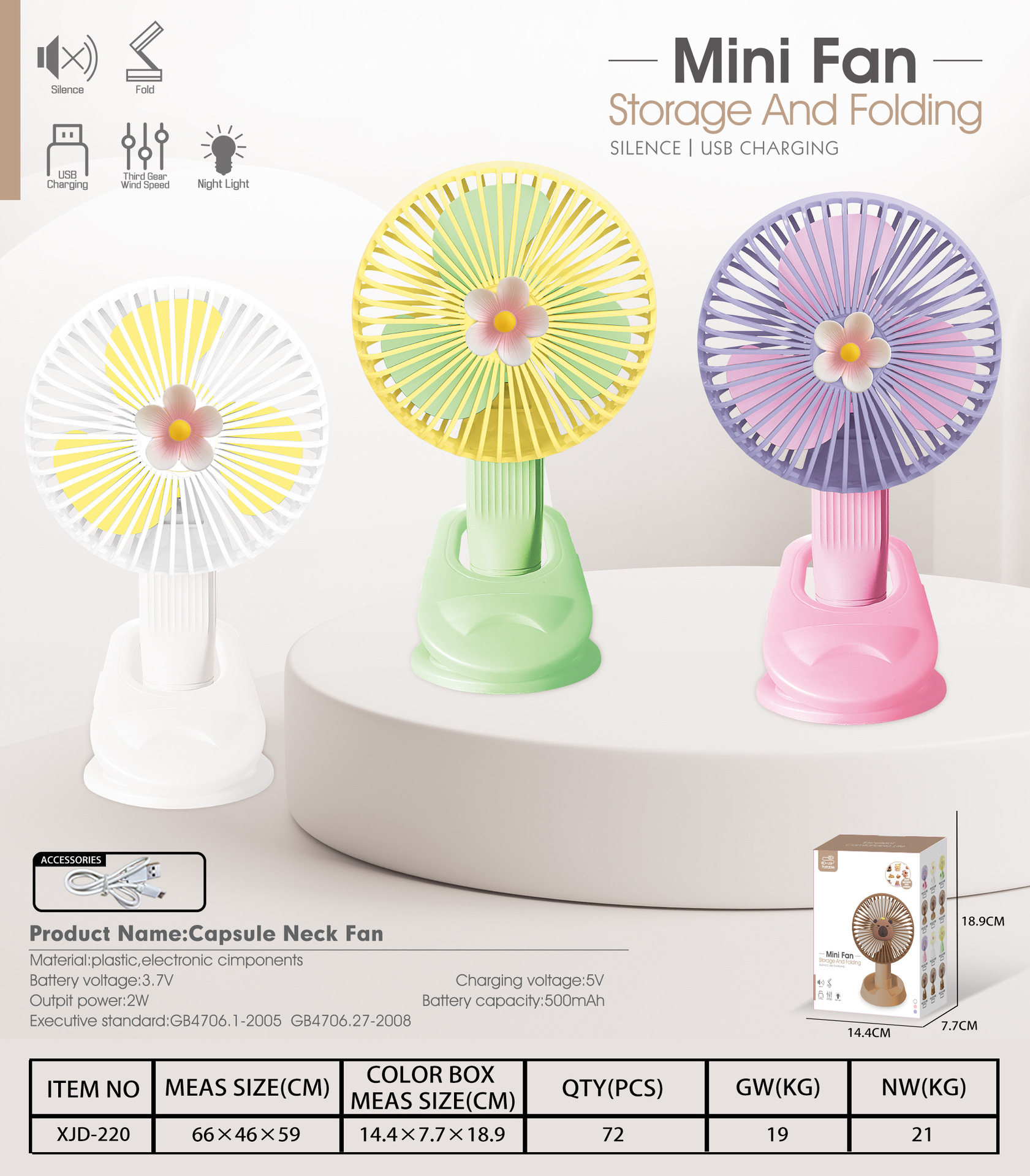 cross-border new arrival fan portable usb charging light creative desktop vertical mini electronic fan home office
