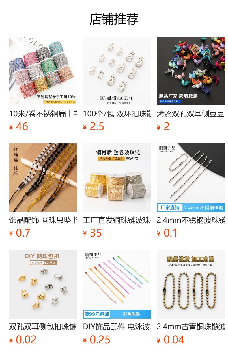 | 3.2mm * 60cm stainless steel ball chain | CN¥ 0.93 | 99999849 piece available |