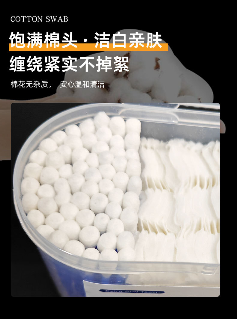 disposable makeup cleaning cotton swab cotton ball cotton cloth three-in-one factory customized household double-headed ear cleaning cotton swab combination