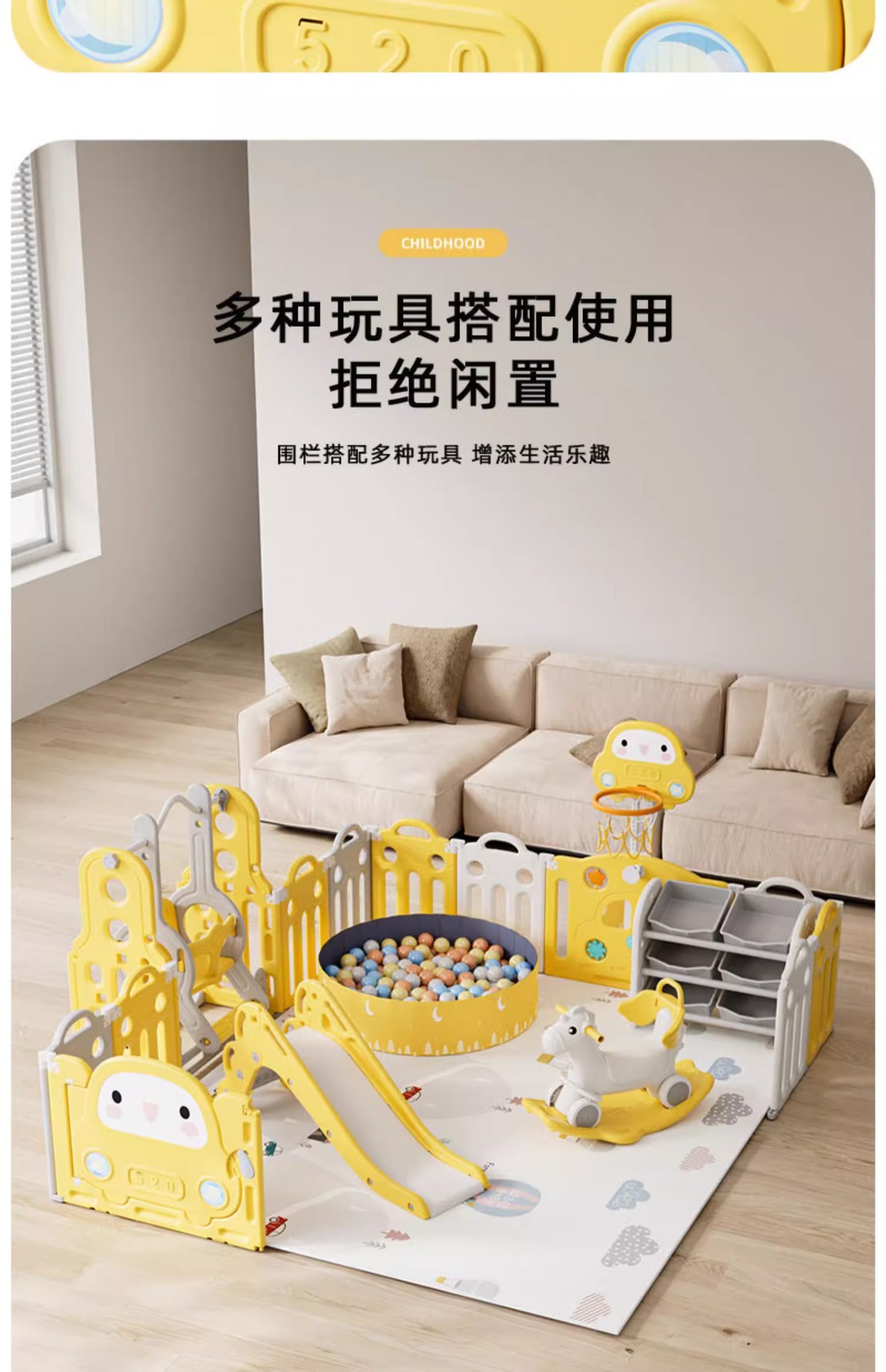 10+2 + drawing board bar + basketball stand + slide + swing + toy rack. + ball pool + rocking horse