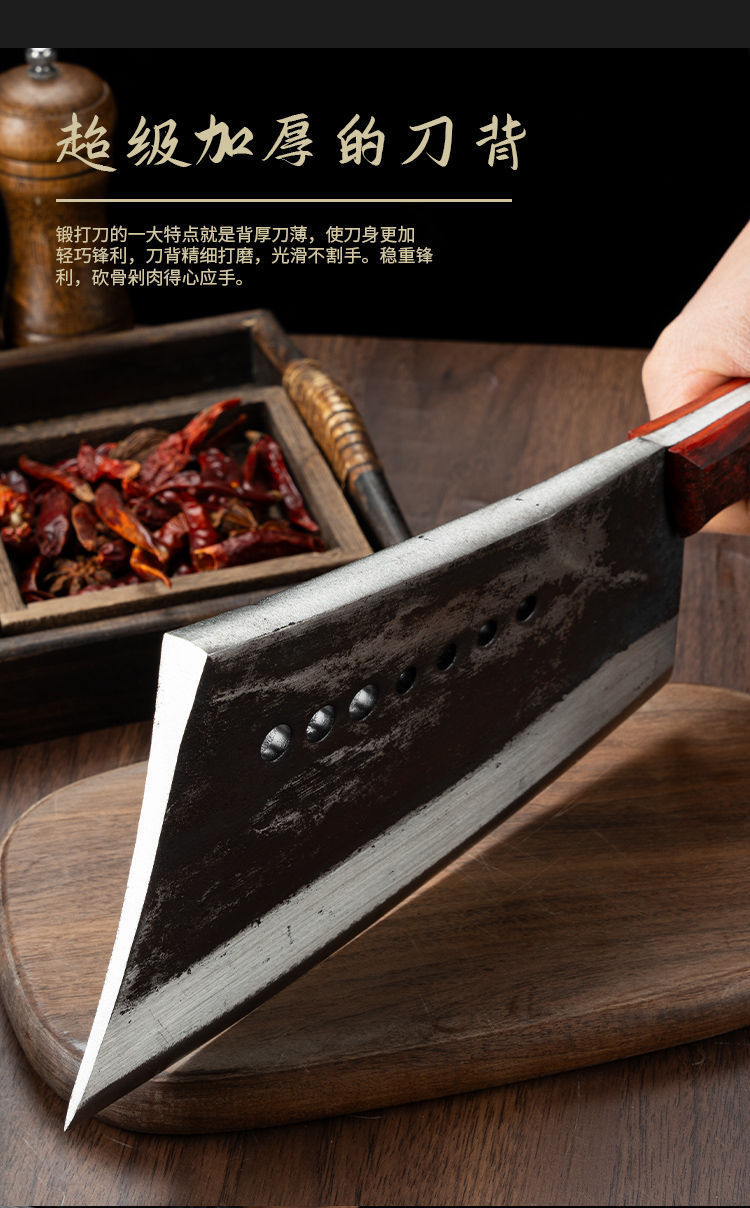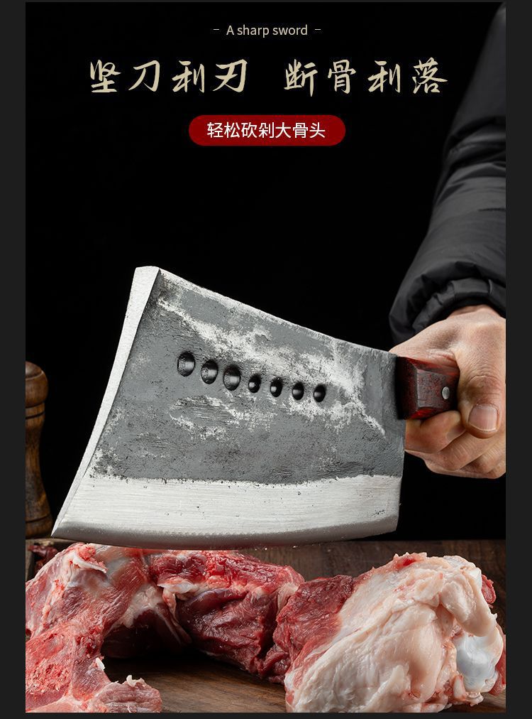 thickened extra large bone cutting knife-solid wood handle