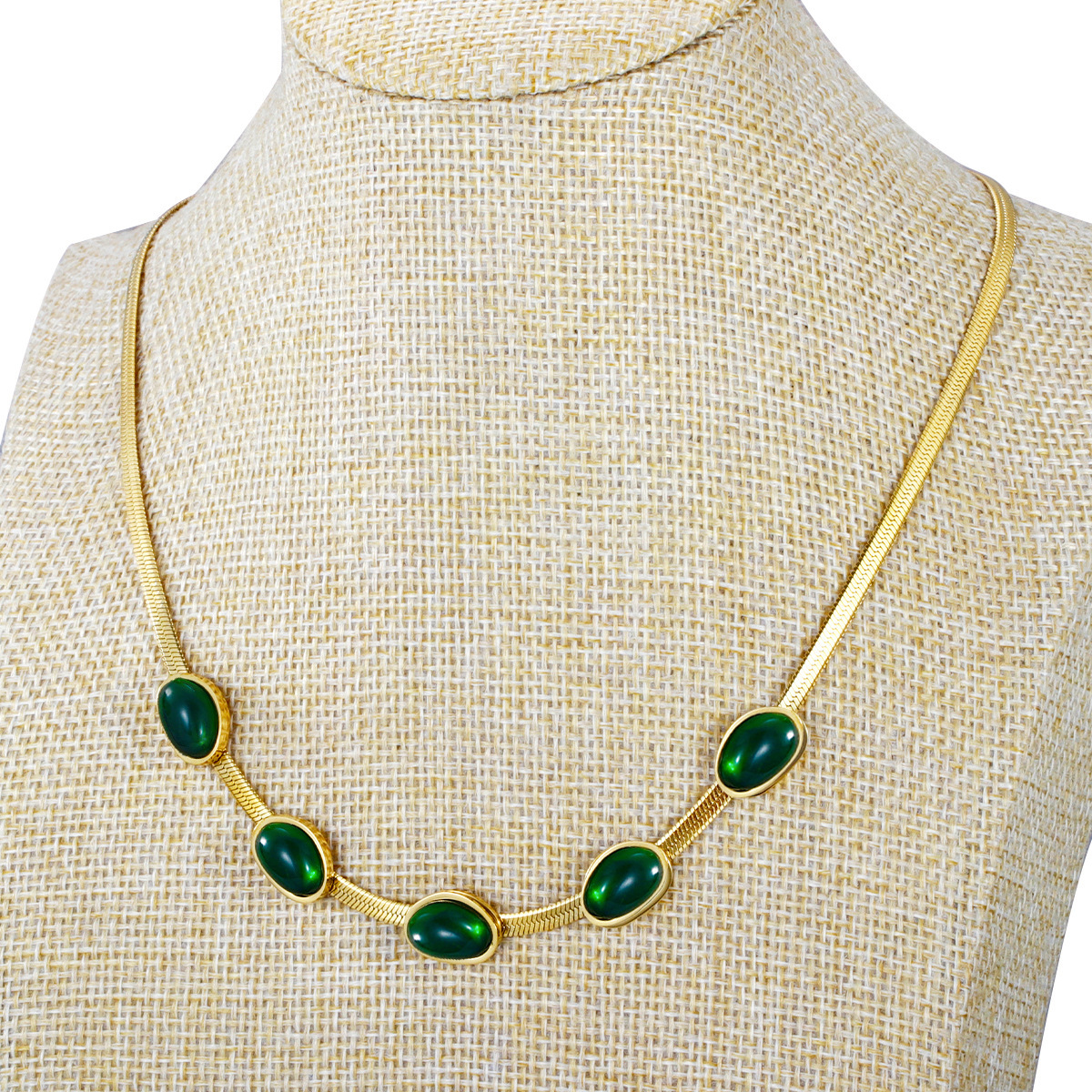 retro shaped emerald necklace