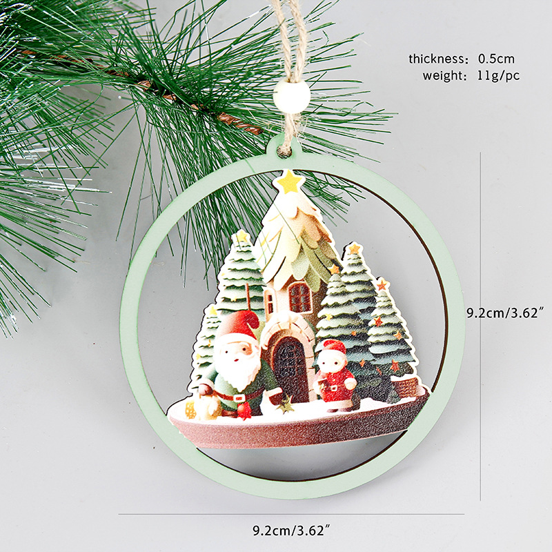 colorful wooden small pendant (10cm round hollow gift santa claus)