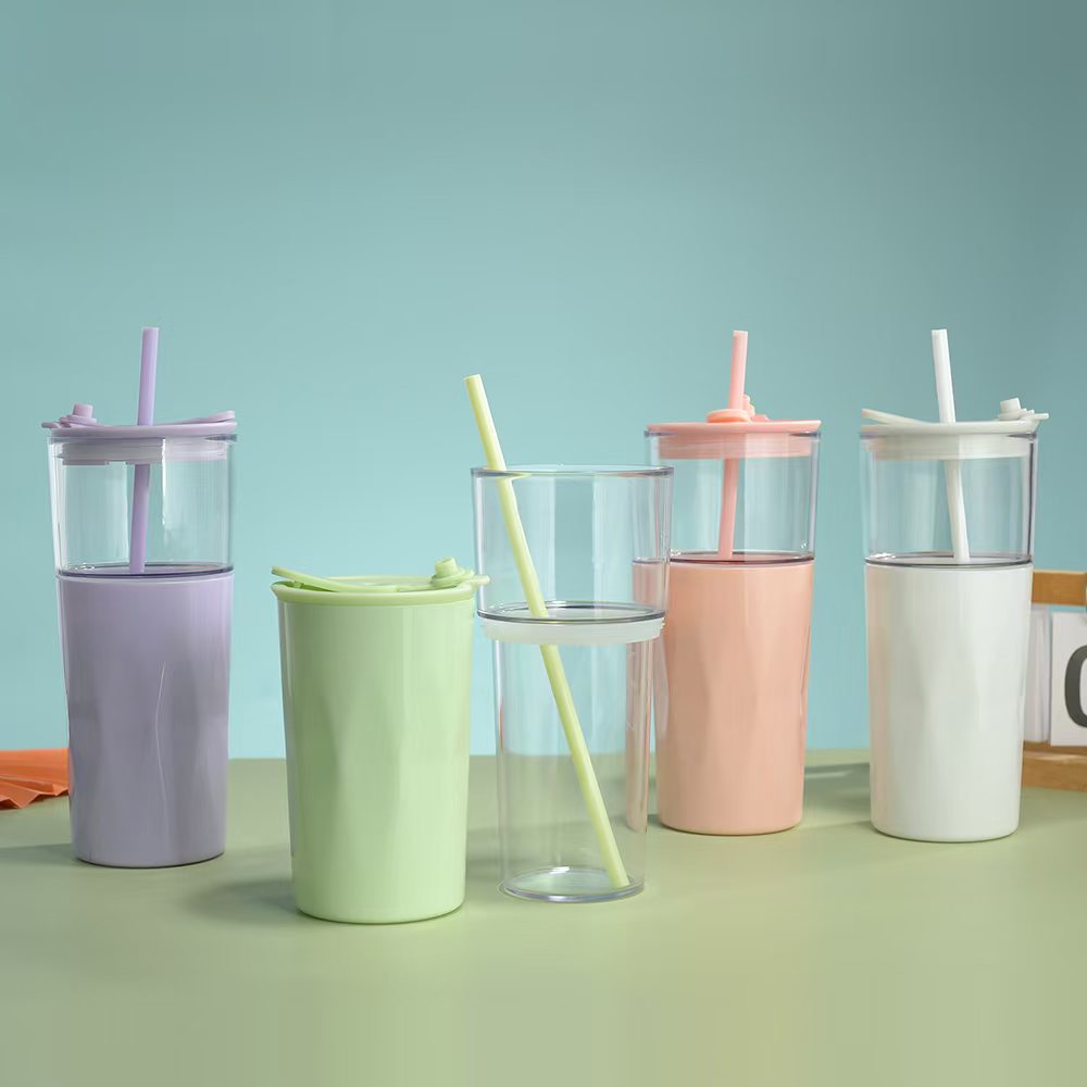 new plastic cup cup with straw tea water separation coffee cup lemonade cup simple large capacity outdoor tumbler