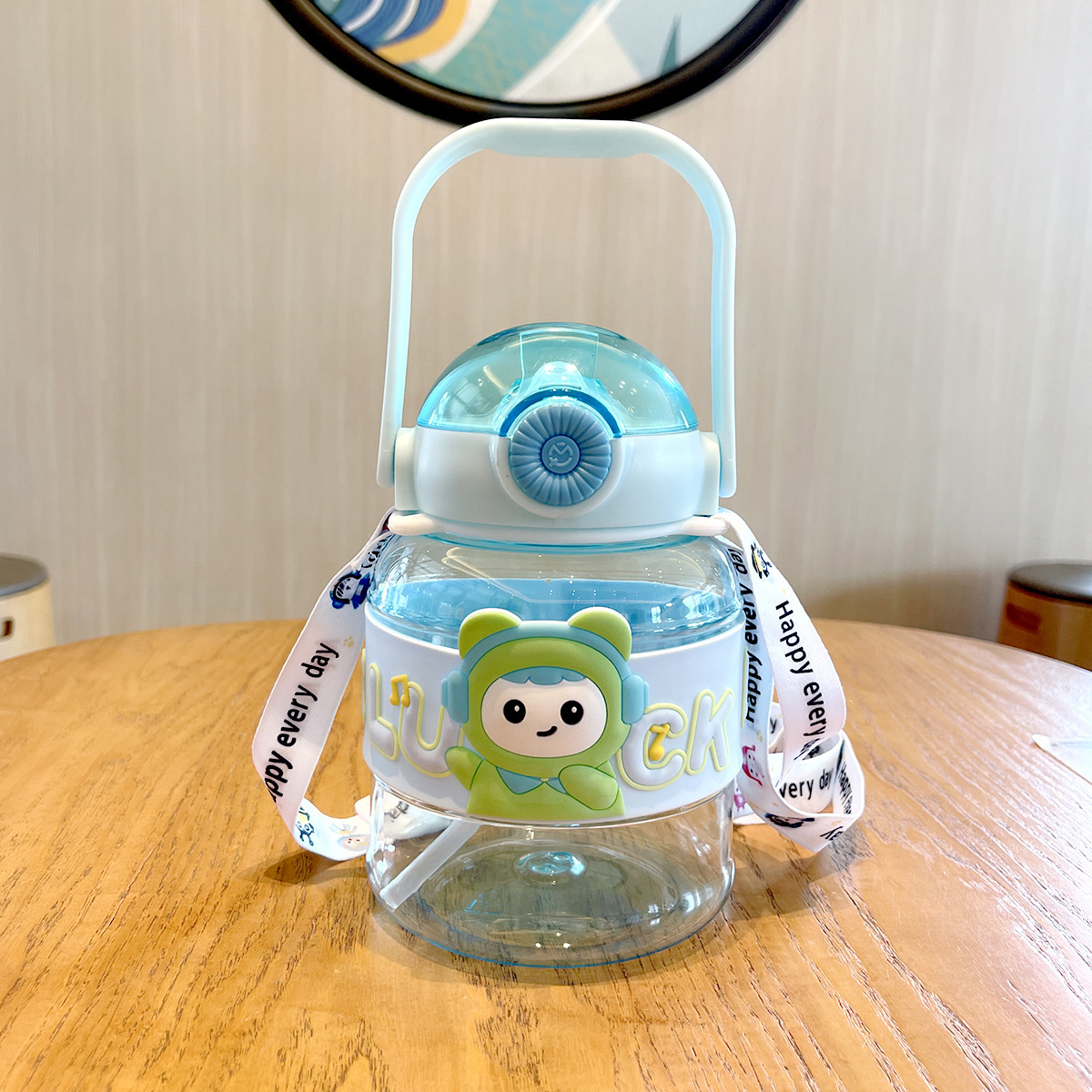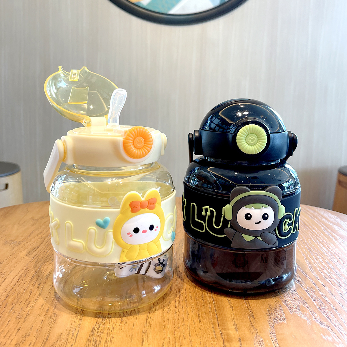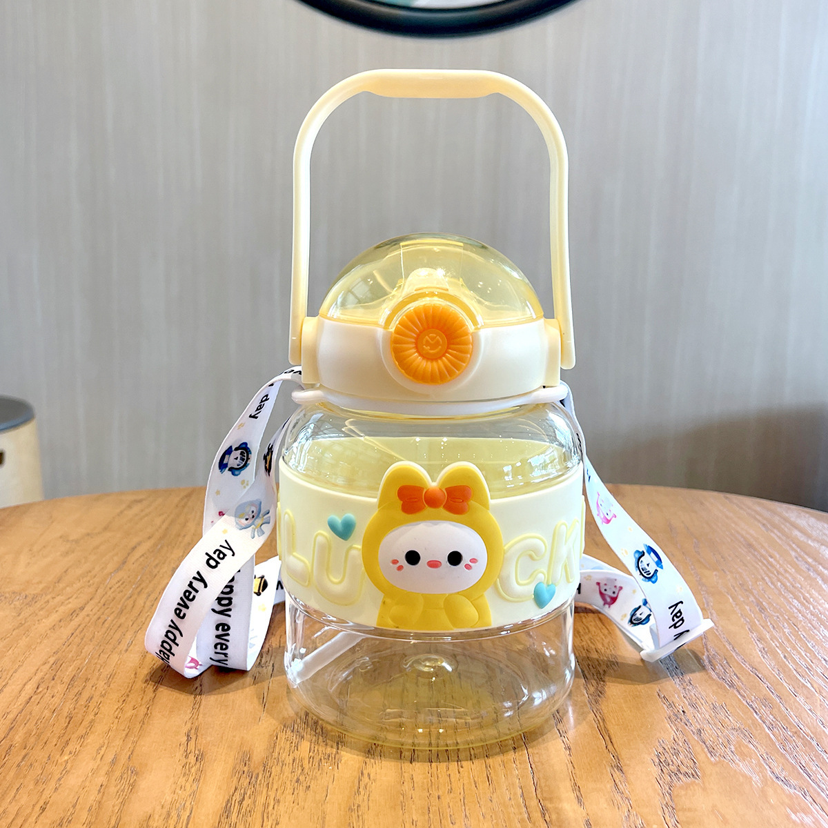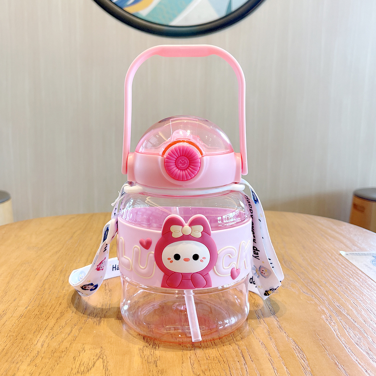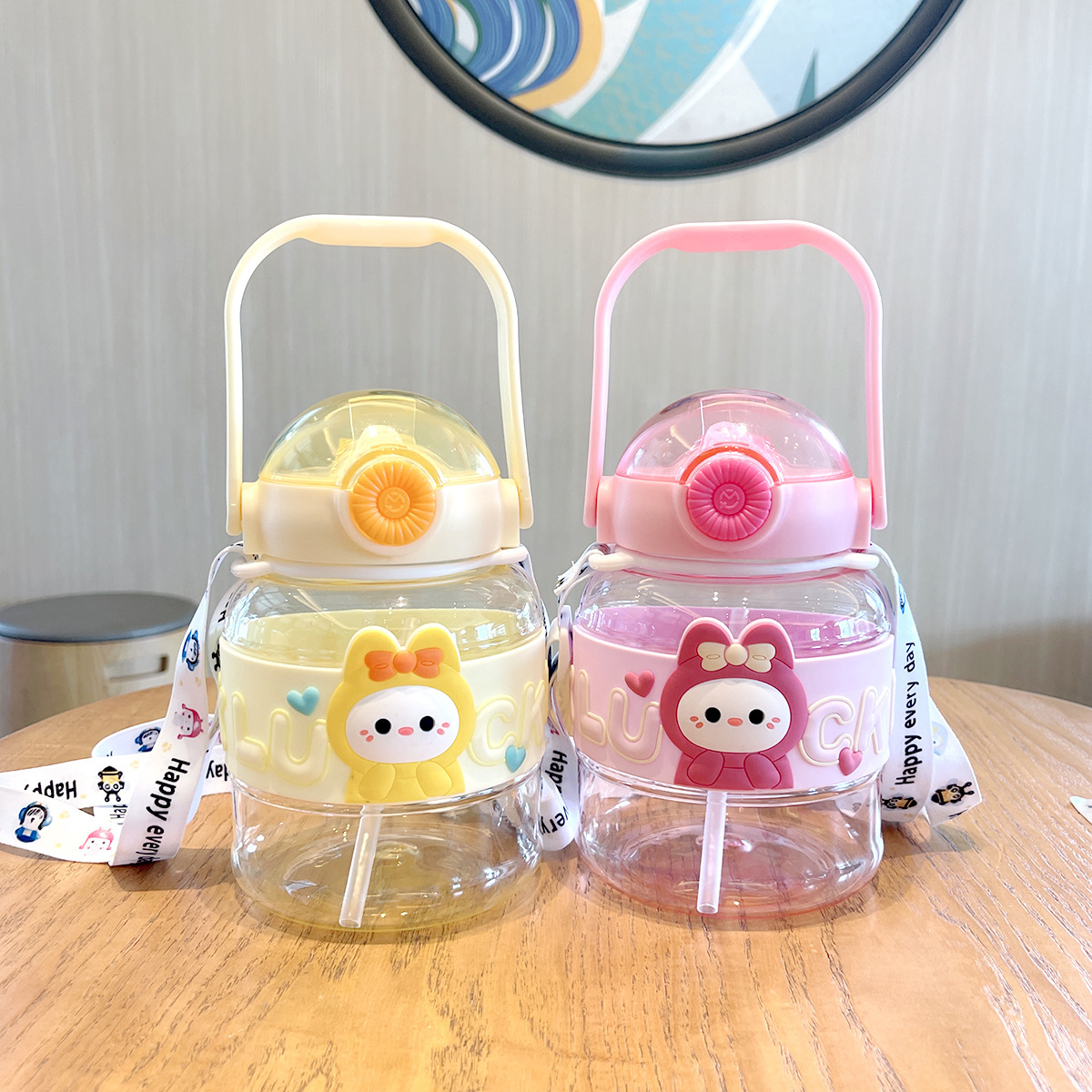 cartoon doll ton ton cup 1l large capacity plastic cup doll cup with straw bottle for children lanyard water bottle big belly cup