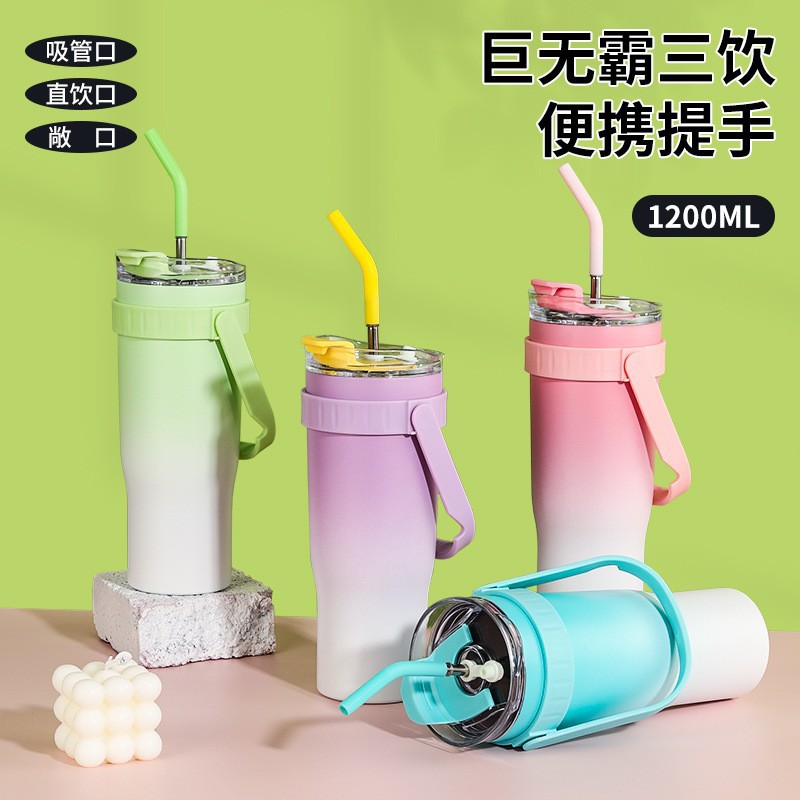 cross-border 40oz cup internet sensation straw convenient portable large ice cup double-layer heat insulation big mac large-capacity water cup