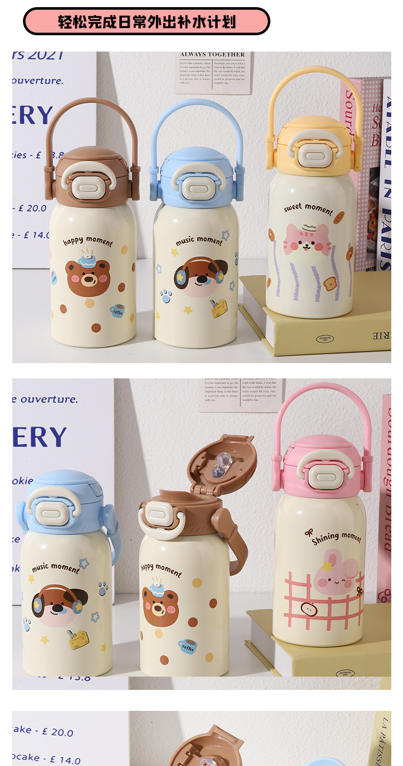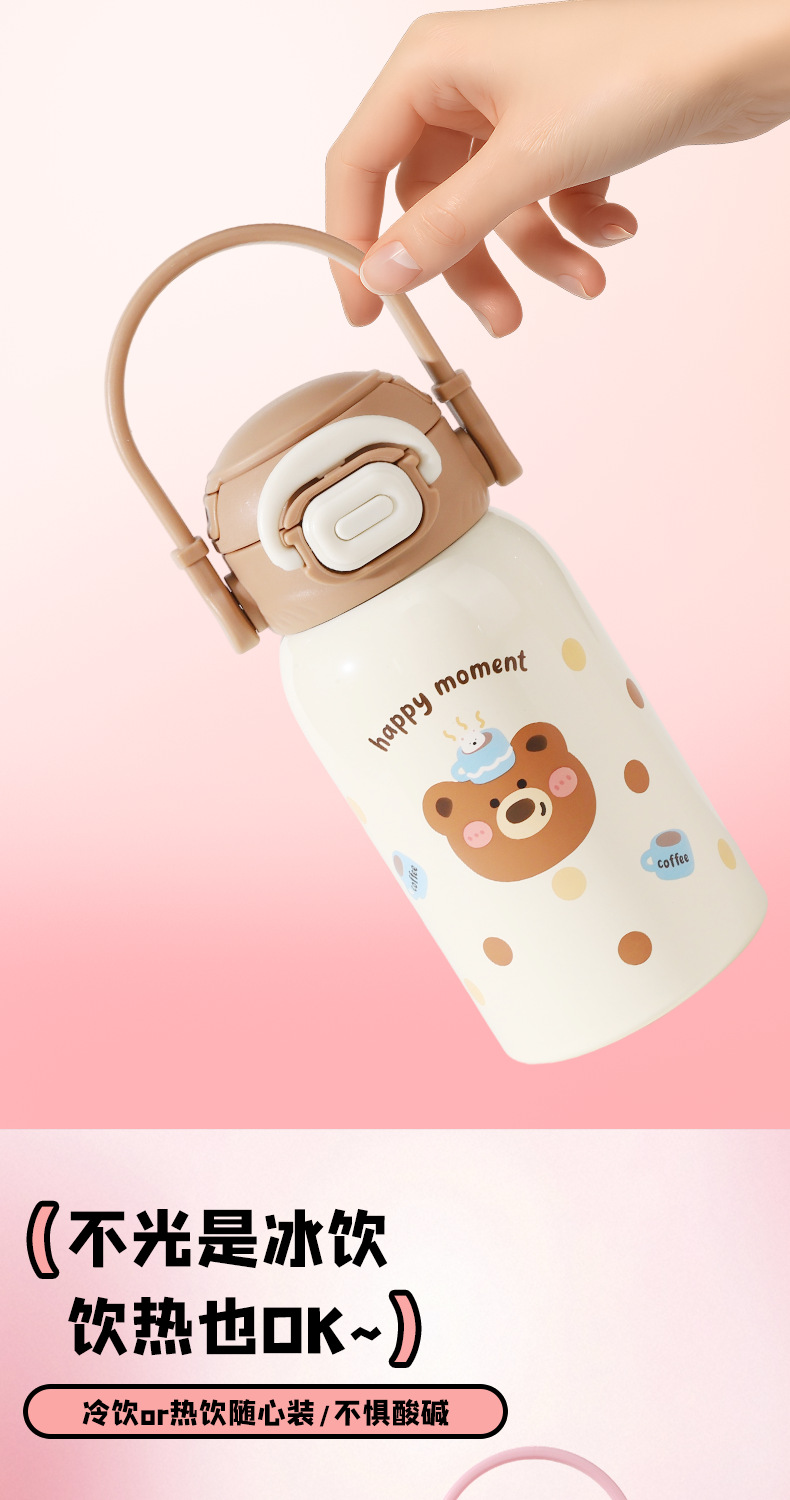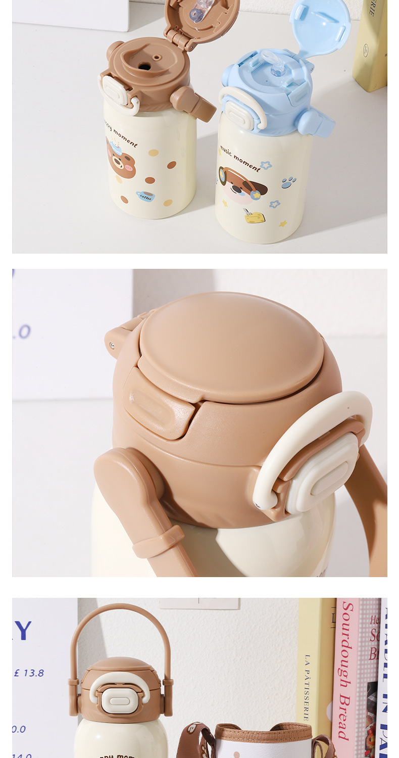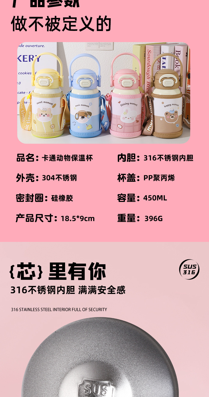 new children's thermos mug cute animal good-looking portable strap portable cup 316 stainless steel double drinking cup
