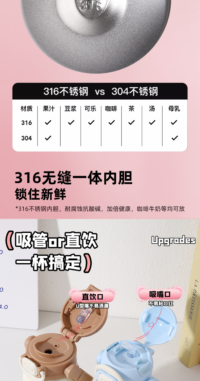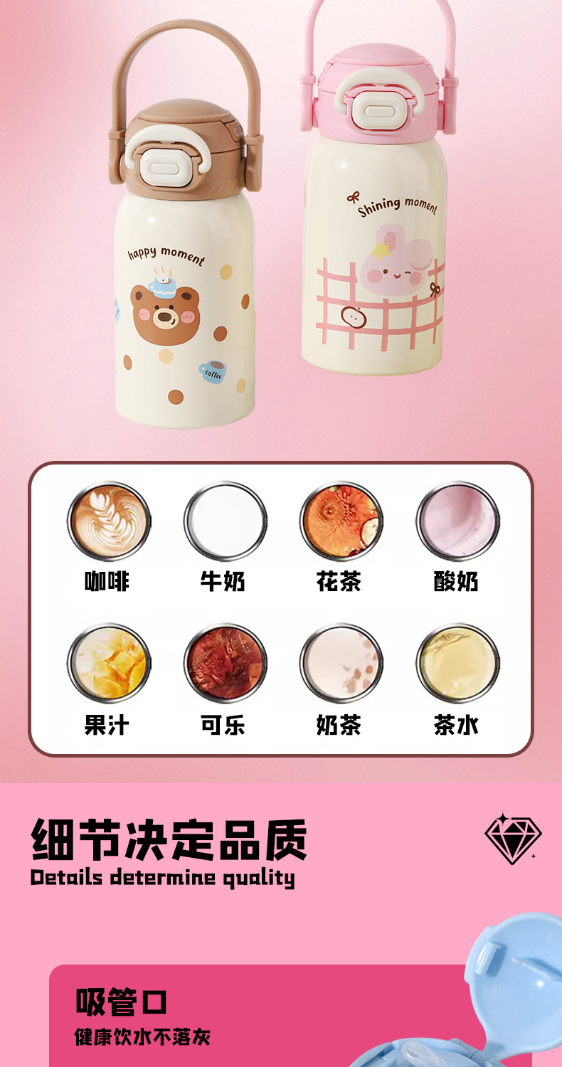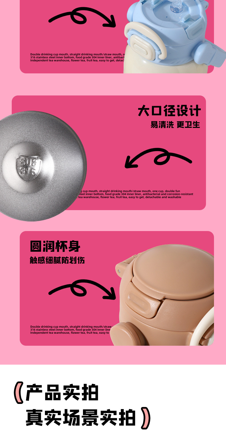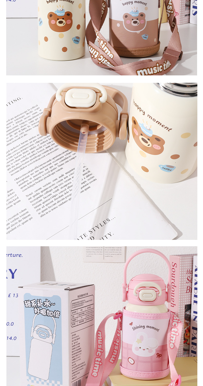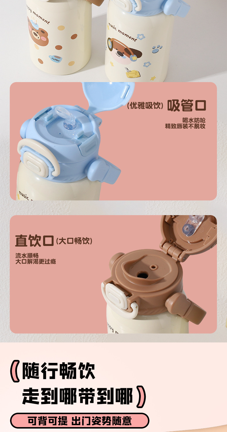 new children's thermos mug cute animal good-looking portable strap portable cup 316 stainless steel double drinking cup
