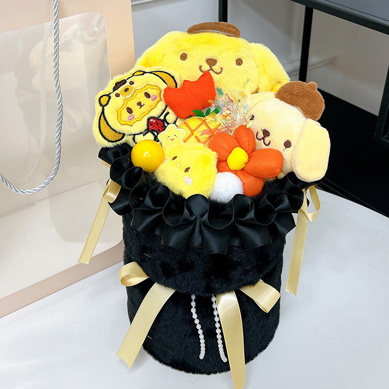 purple and black series-black pom pom purin + gift bag + greeting cards