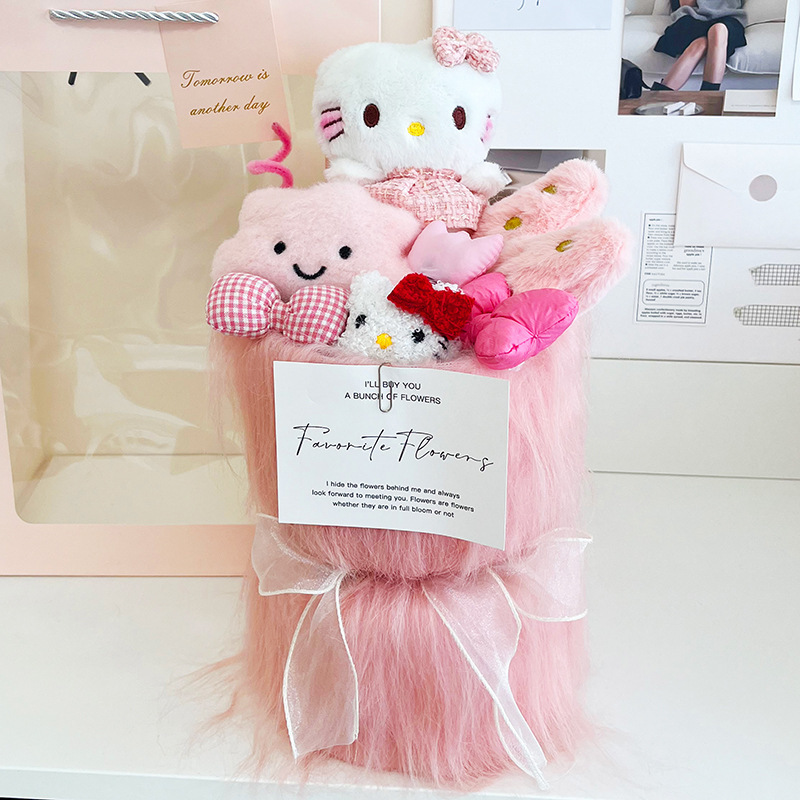 pink long hair kittya + gift bag + greeting card