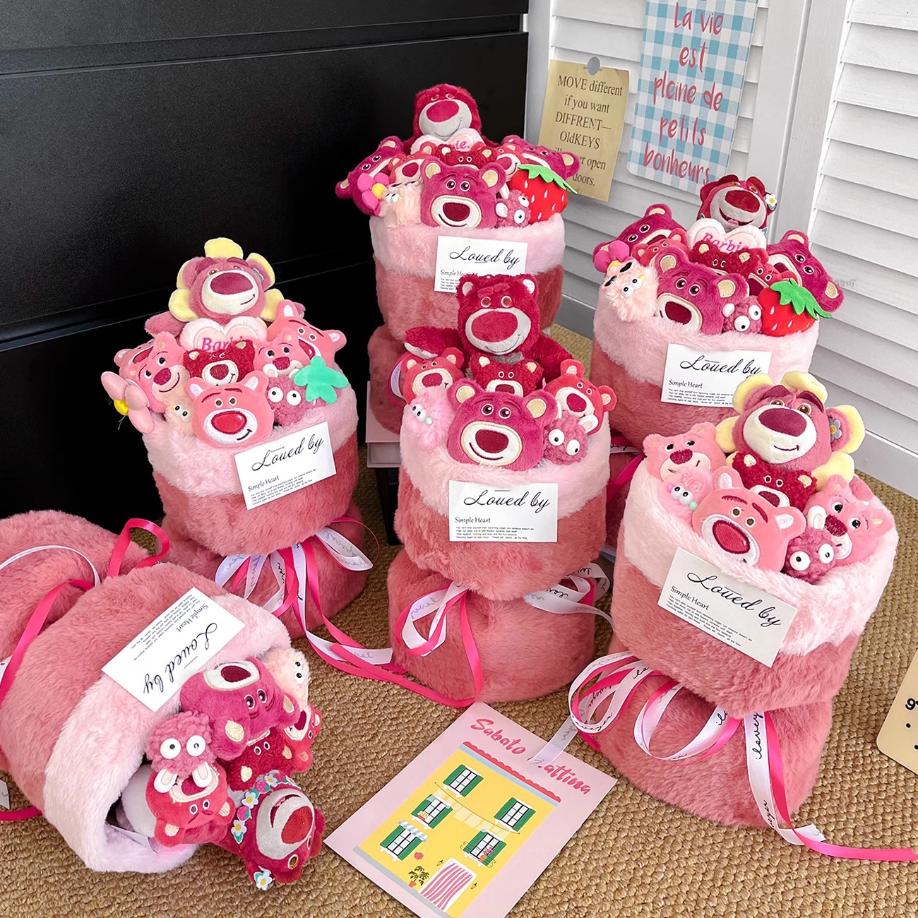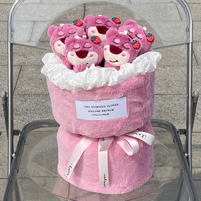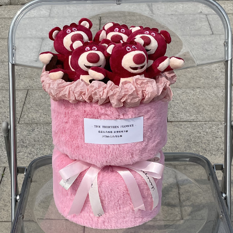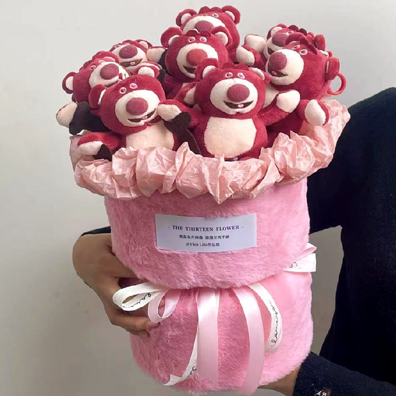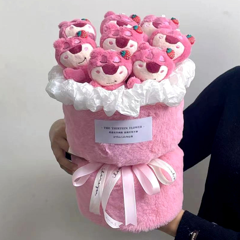 8 strawberry bear finished bouquet + gift bag + greeting cards