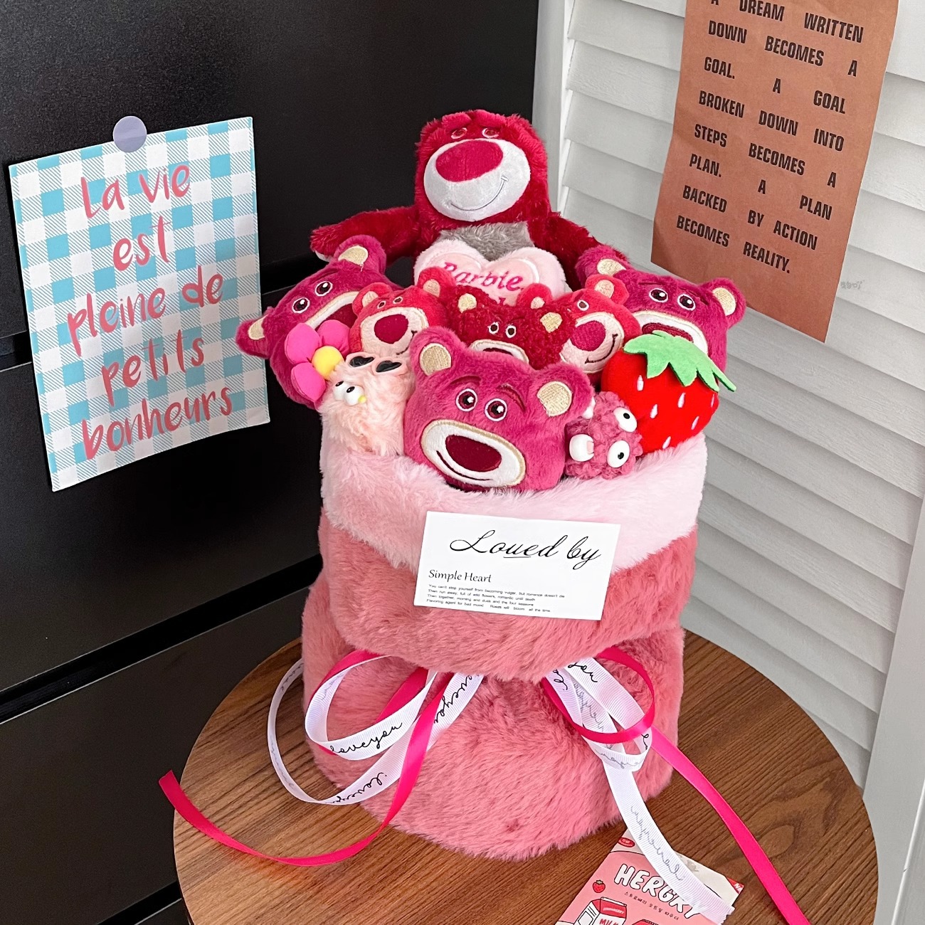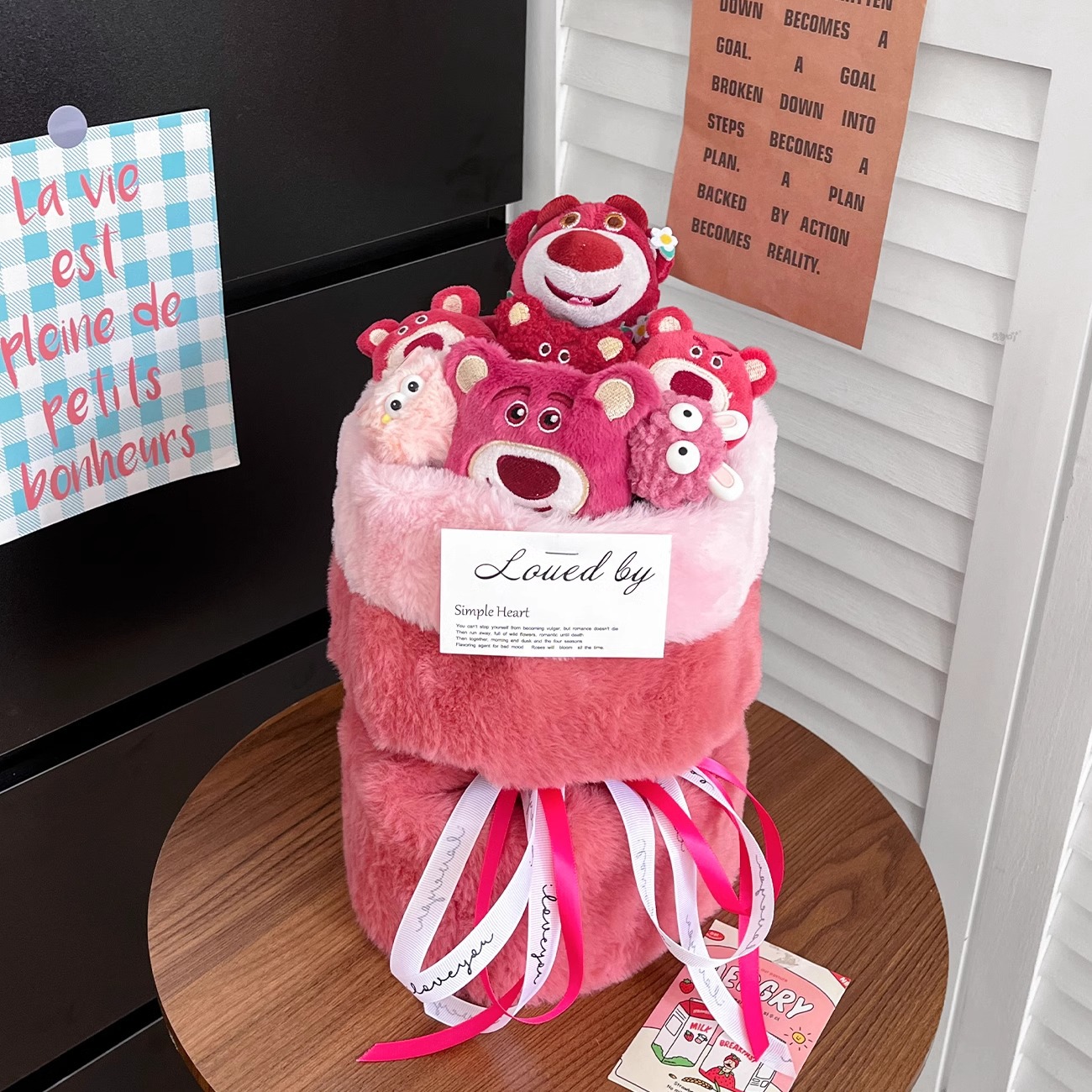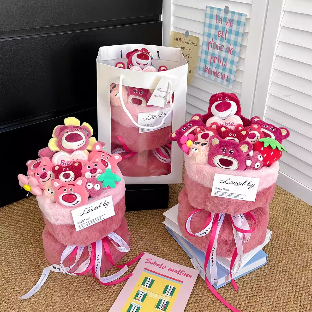 cute strawberry bear bouquet + gift bag + greeting card