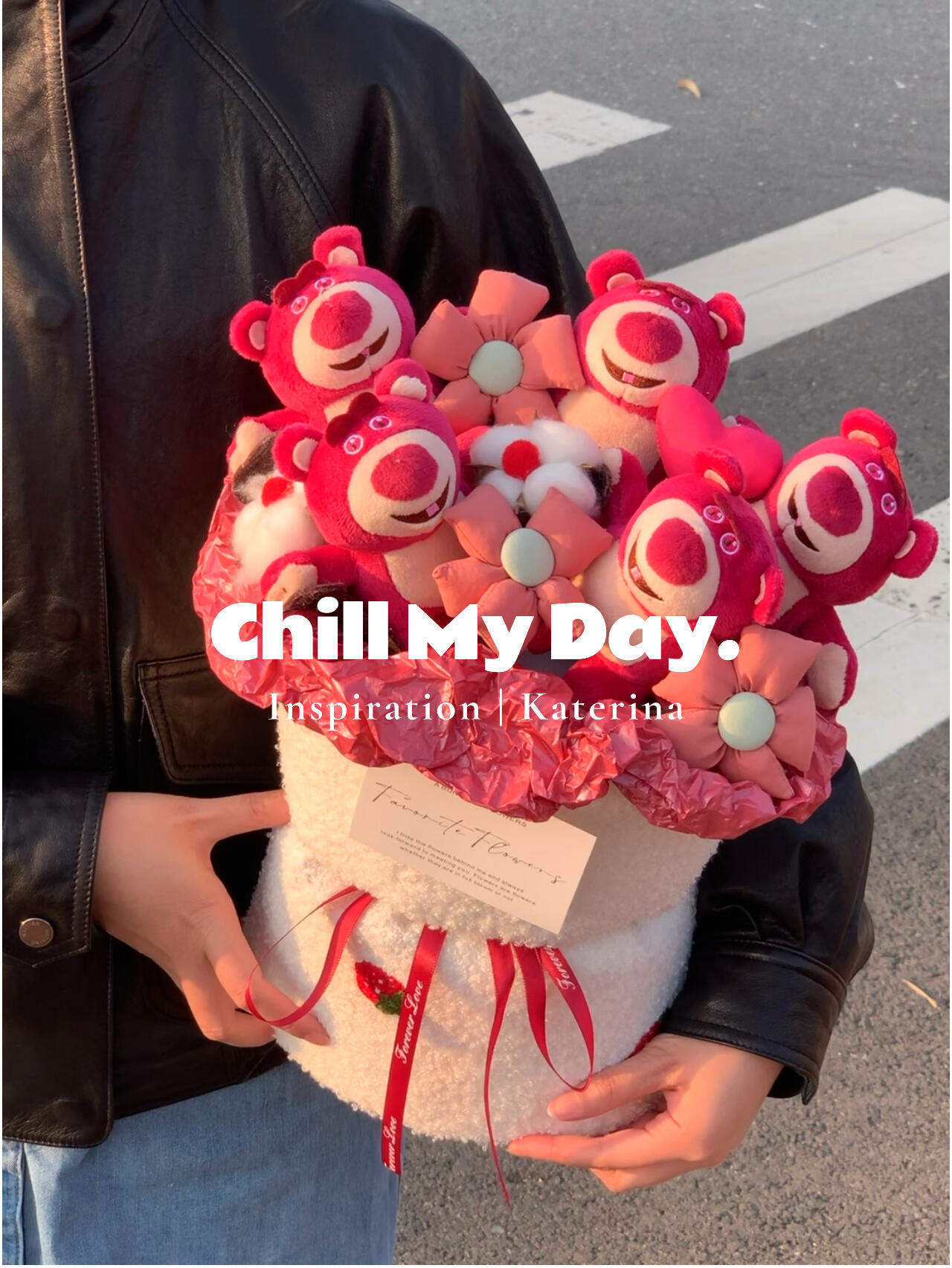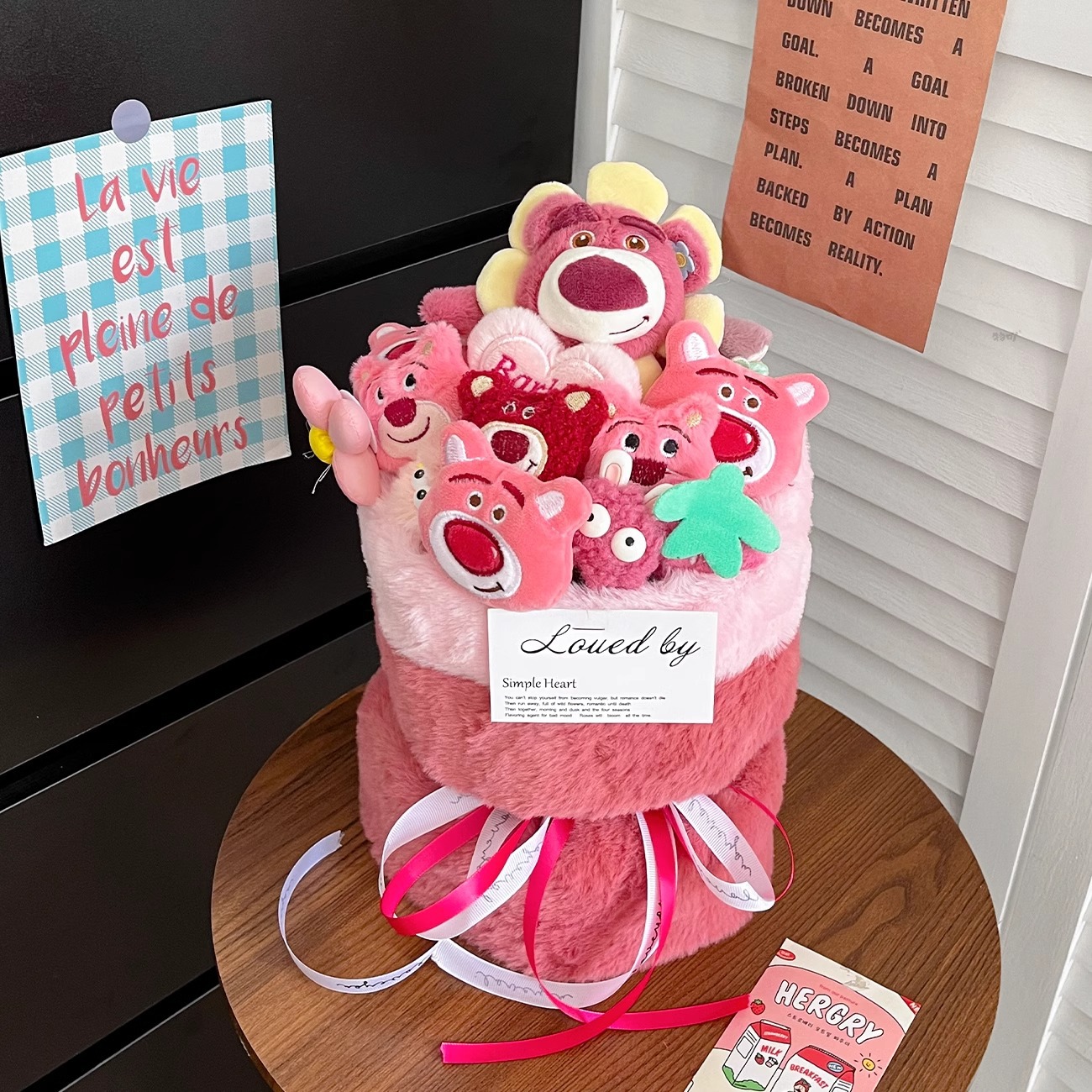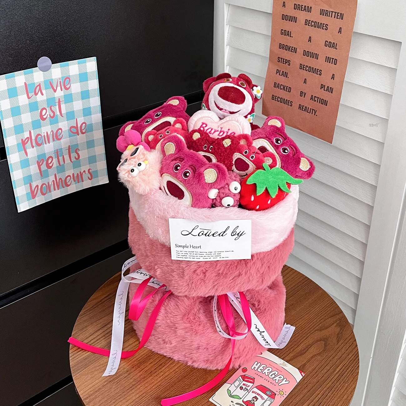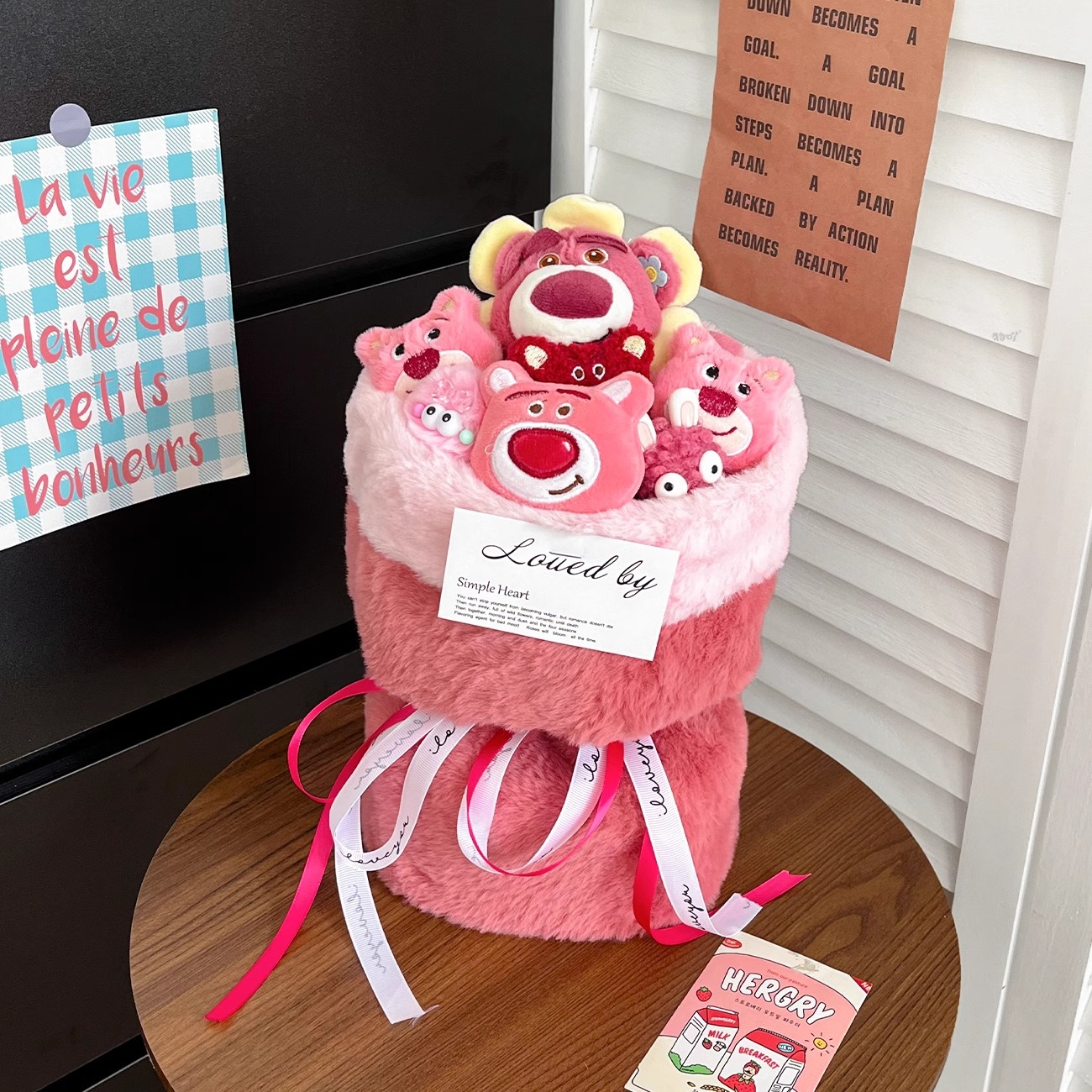 cute strawberry bear bouquet + gift bag + greeting card