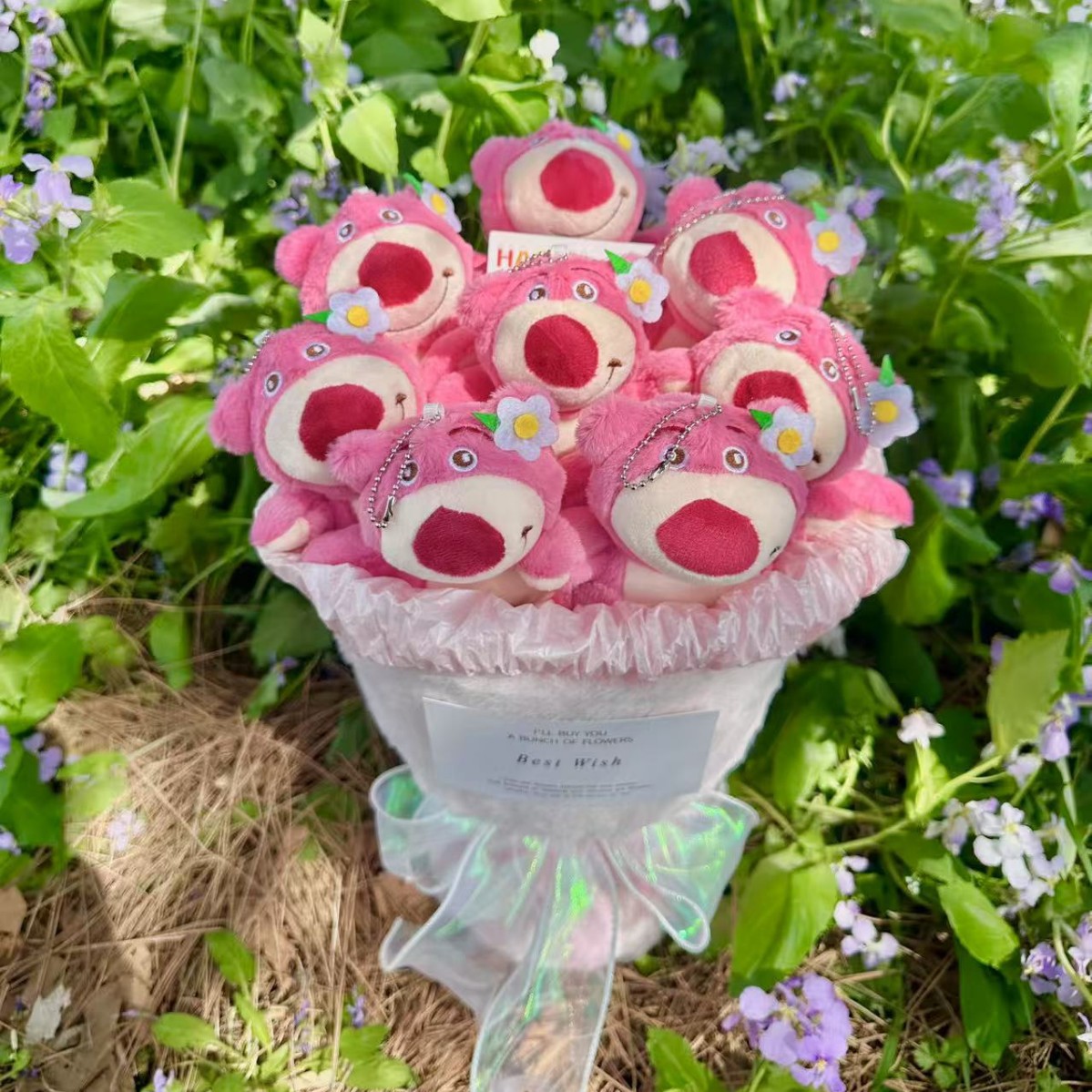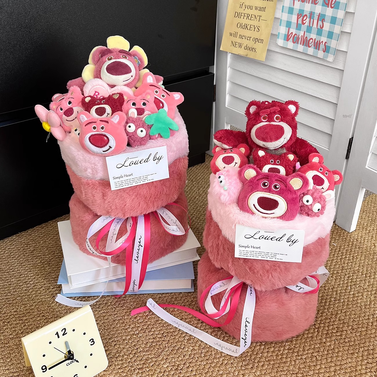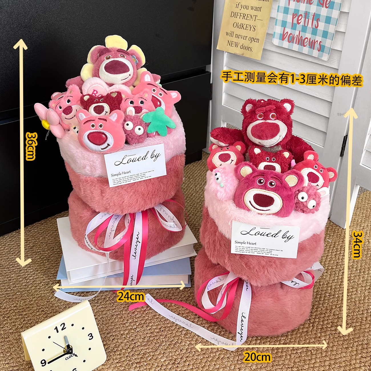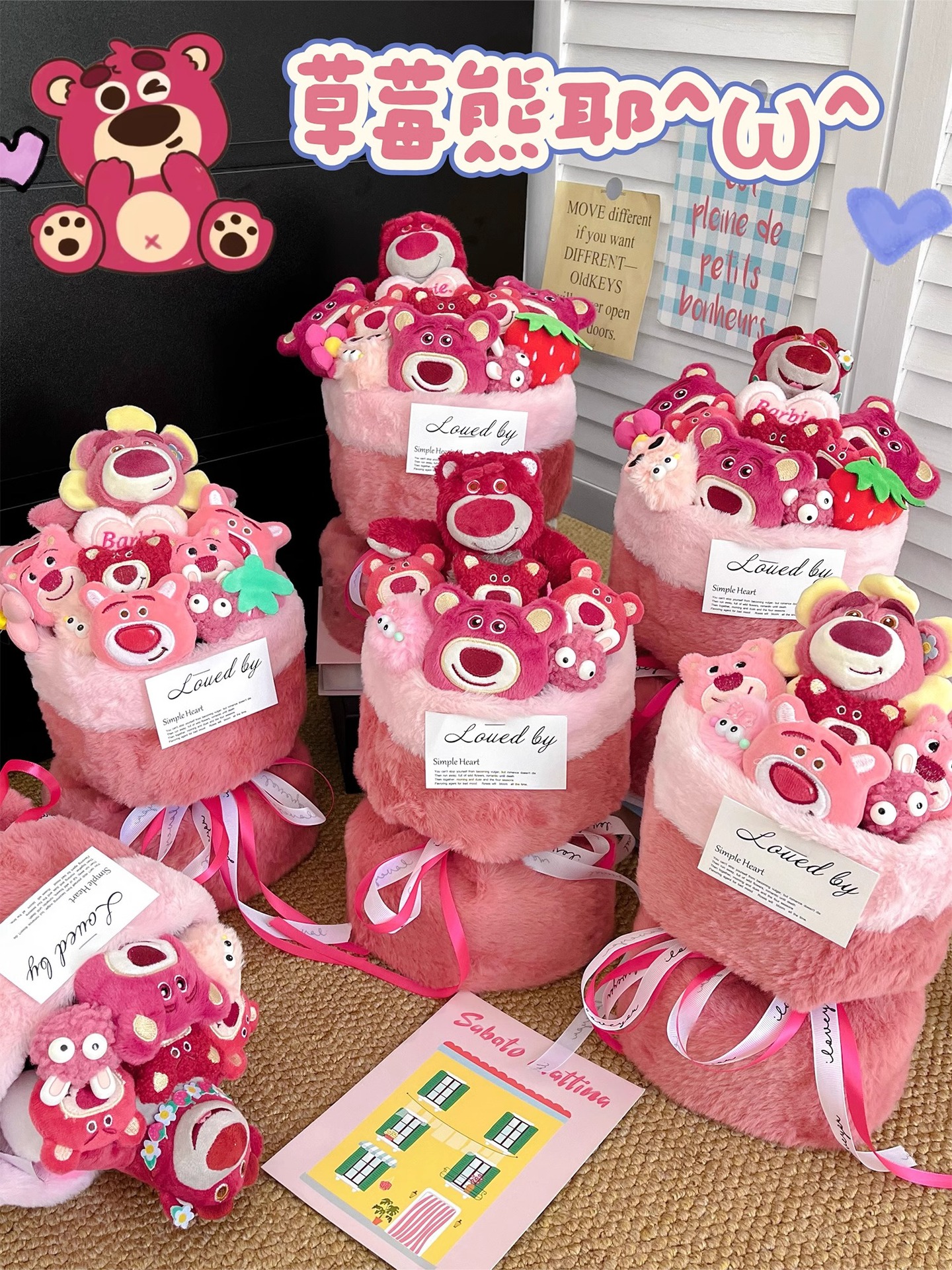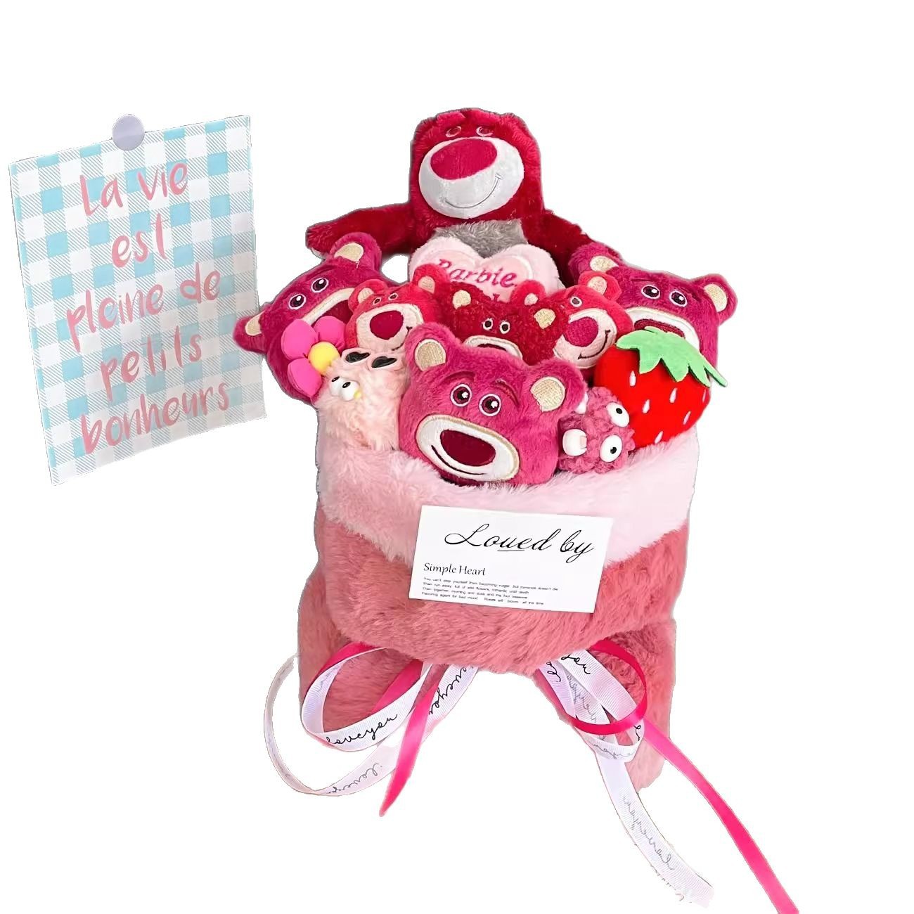 cute strawberry bear bouquet-large + gift bag + greeting cards
