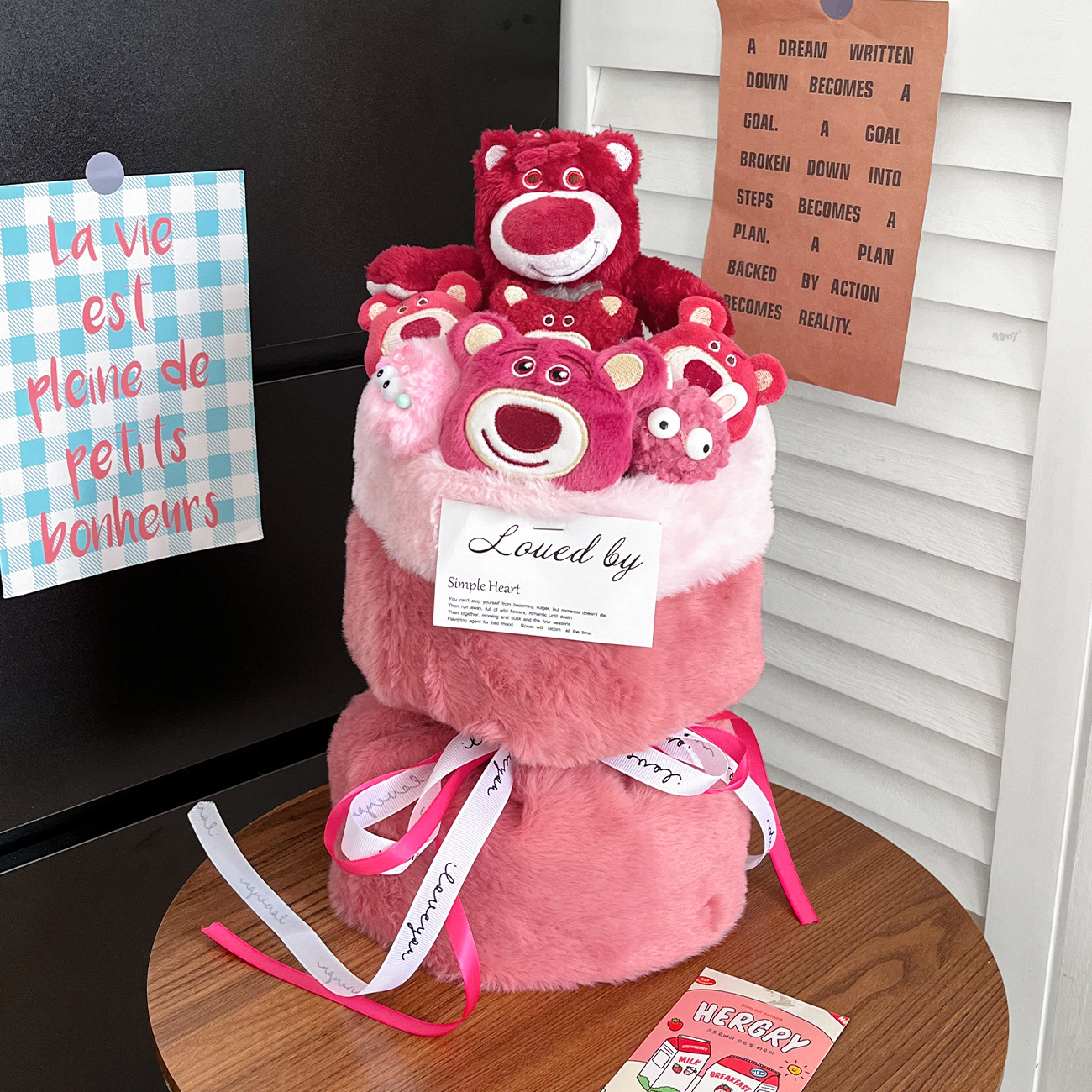 small wreath strawberry bear bouquet + gift bag + greeting card