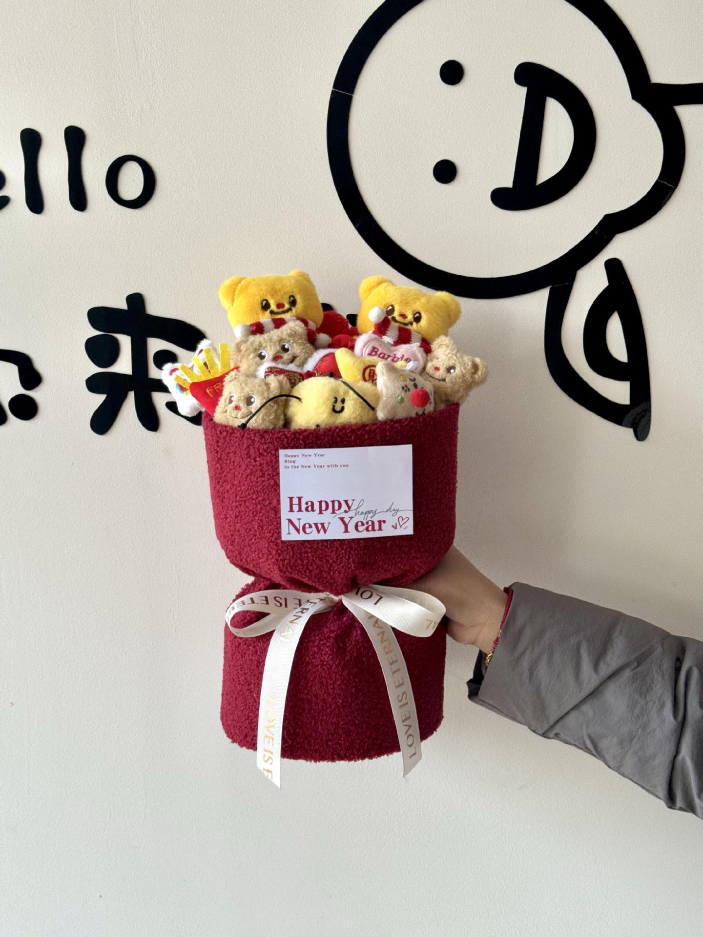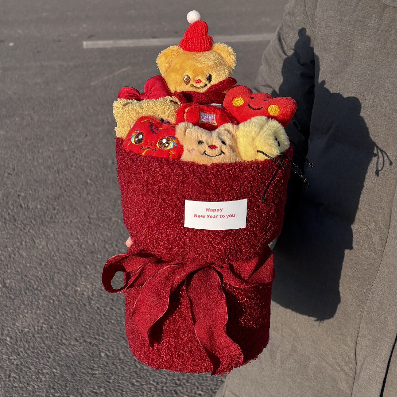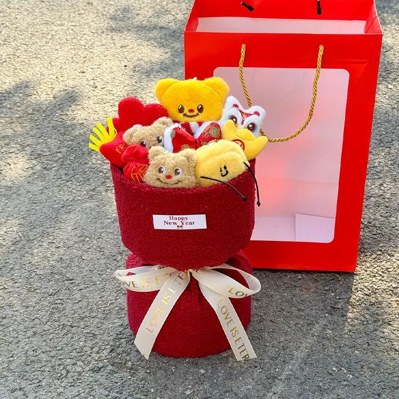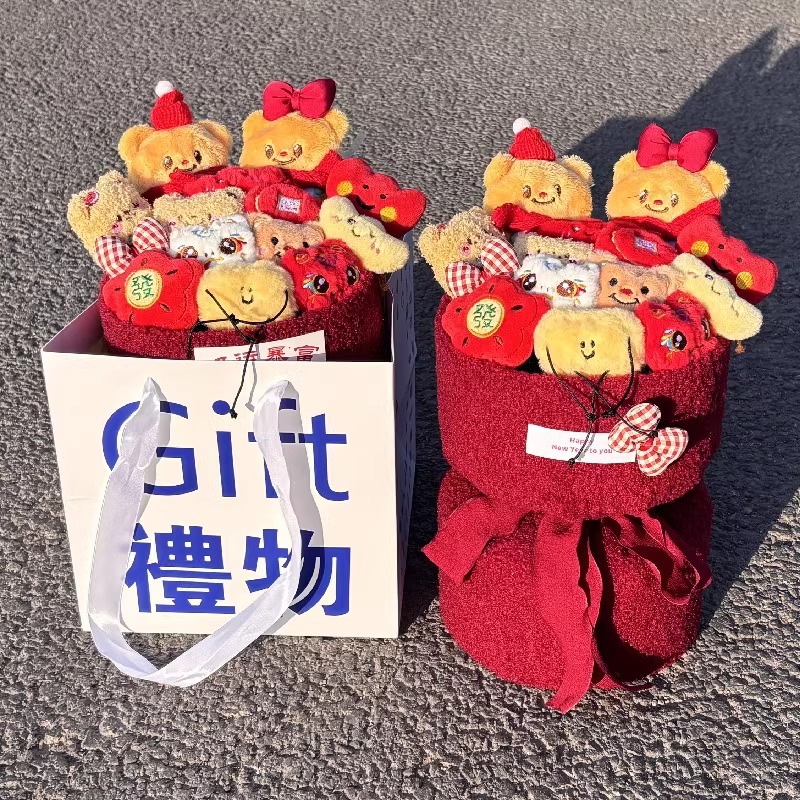 new year a butter bear doll bouquet + gift bag + greeting card