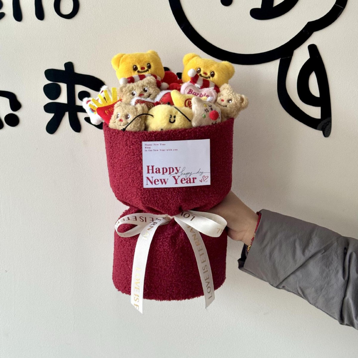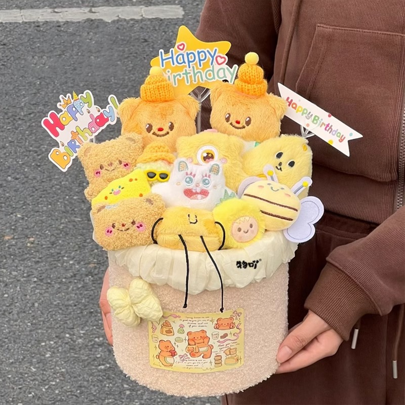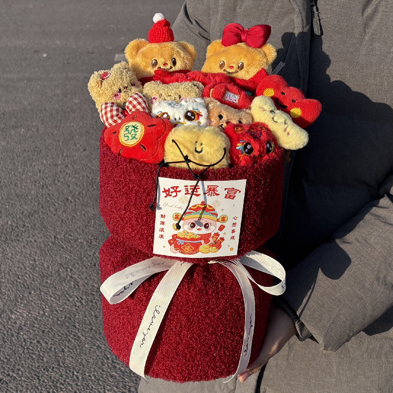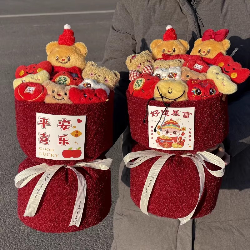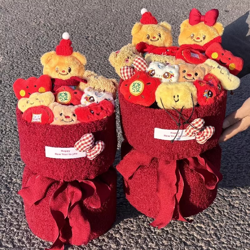 new year a butter bear doll bouquet + gift bag + greeting card