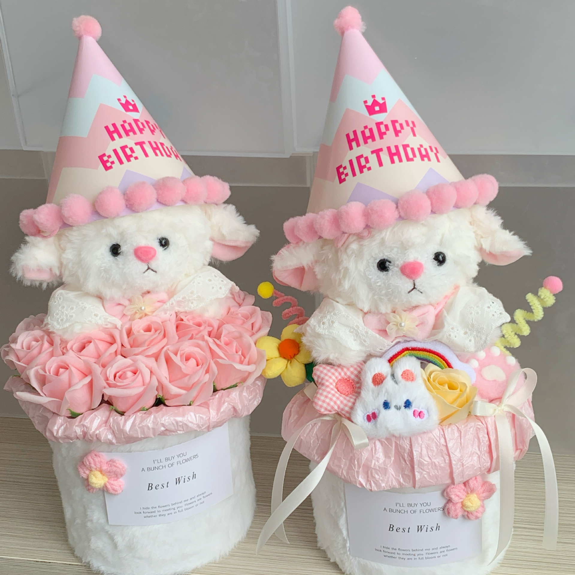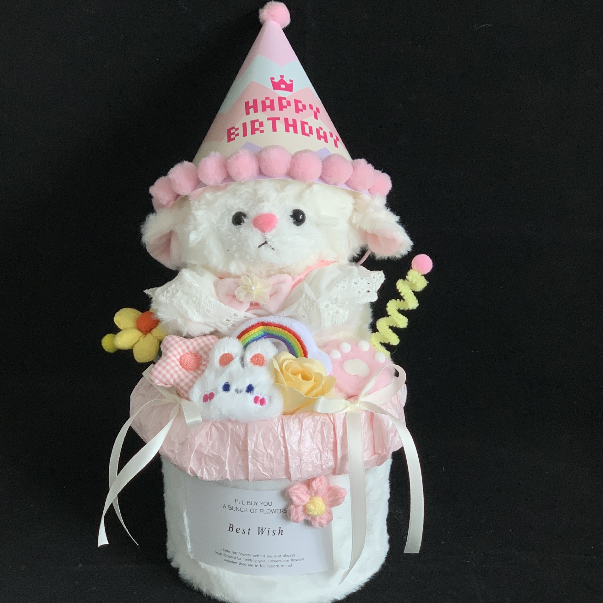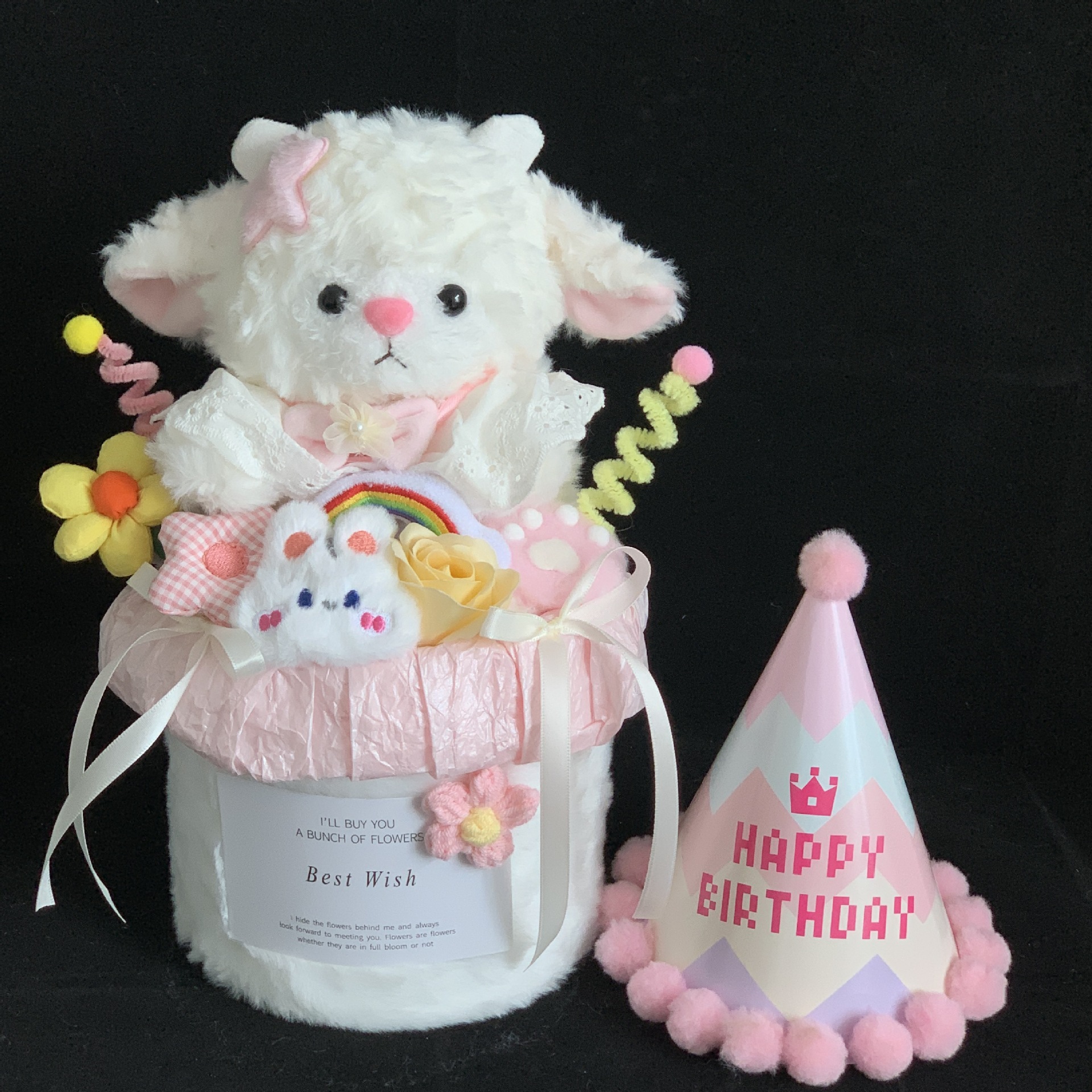 cute lamb + birthday hat rose flower pot (collection gift bag)
