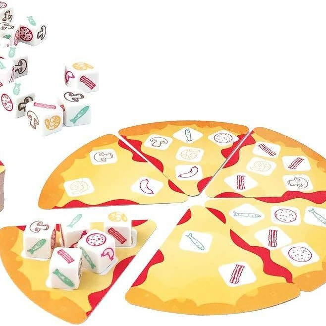 Pizza Party is an exciting, fast-paced matching game suitable for players of all ages. In this game, players match their tiles to the ingredients on the order card to compete face-to-face to create a perfect pizza. The player who completes the pizza first wins this round, bringing an exciting competitive experience. This game is designed for two players, and each round is fast enough to keep everyone involved and standing on their feet. The easy-to-understand rules allow young players to get into it, and the elements of speed and strategy also allow adults to have fun. The colorful ingredients add to the fun, making the game visually appealing and exciting. Roll the dice to match the toppings on the slices. Keep rolling until all matches are made. Now take another card to continue forward. The player who makes the entire pizza first wins. Pizza Party is perfect for family game nights, parties, or even as a quick and fun activity during breaks. The compact size makes it ideal for travel and vacations.Ensure you can enjoy fun anytime and anywhere. Whether you're a pizza enthusiast or just looking for a lively game, Pizza Party can provide you with delicious times! Pizza Party is suitable for 2 players aged 6 and above. By adding game extras, more players can join in.