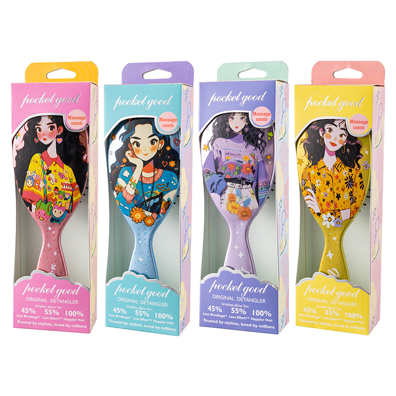 cute girl shiny printing comb fluffy skull top shape shunfa kids' comb girl massage comb air cushion comb