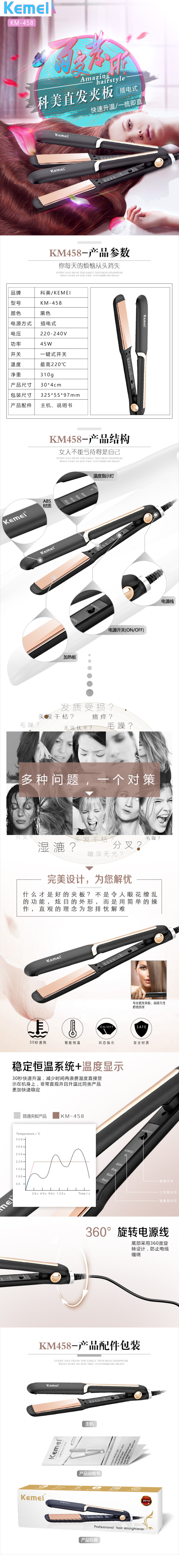 cross-border factory direct sales komei km-458 hair straightener temperature adjustable professional splint
