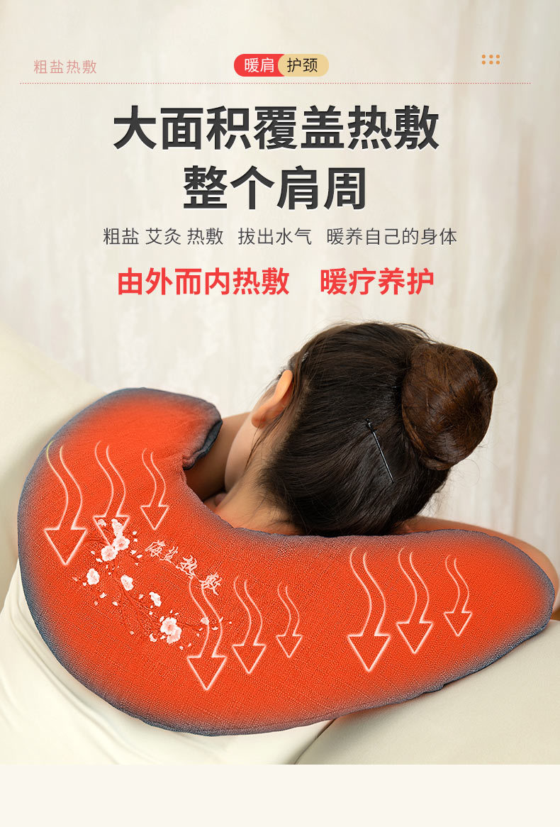 [special for shoulder and neck] u-shaped green embroidery-microwave oven sea salt hot pack + free (fine sprays sprinkling can + acupuncture guide chart + argy wormwood pad)