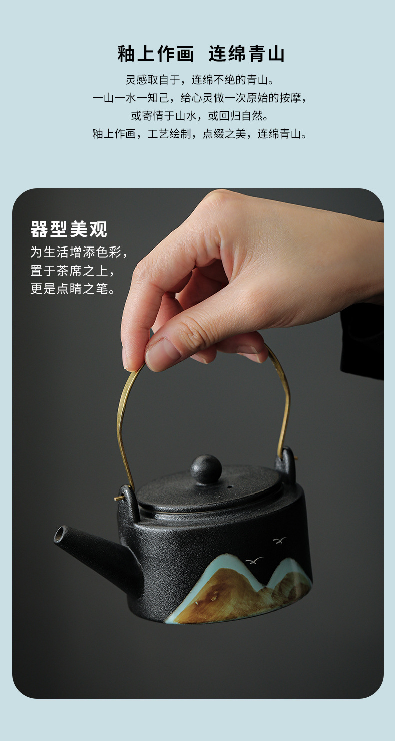 yuanshan loop-handled teapot sets [black four colors]]