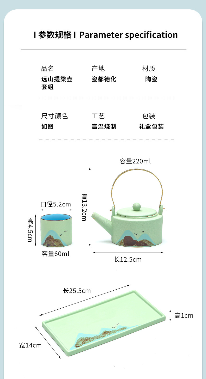 yuanshan loop-handled teapot sets + tea tray [apple green four colors]]