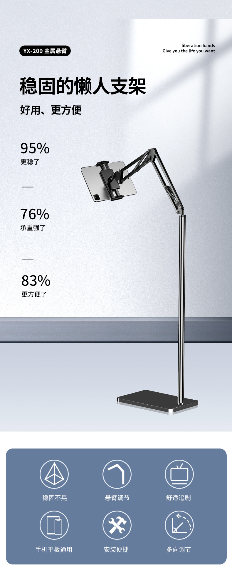 yx-201 black 135 cantilever floor stand * 10.2-inch mobile phone tablet