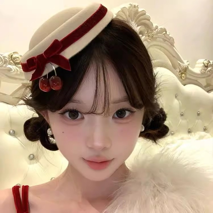 white cherry top hat small hairclip