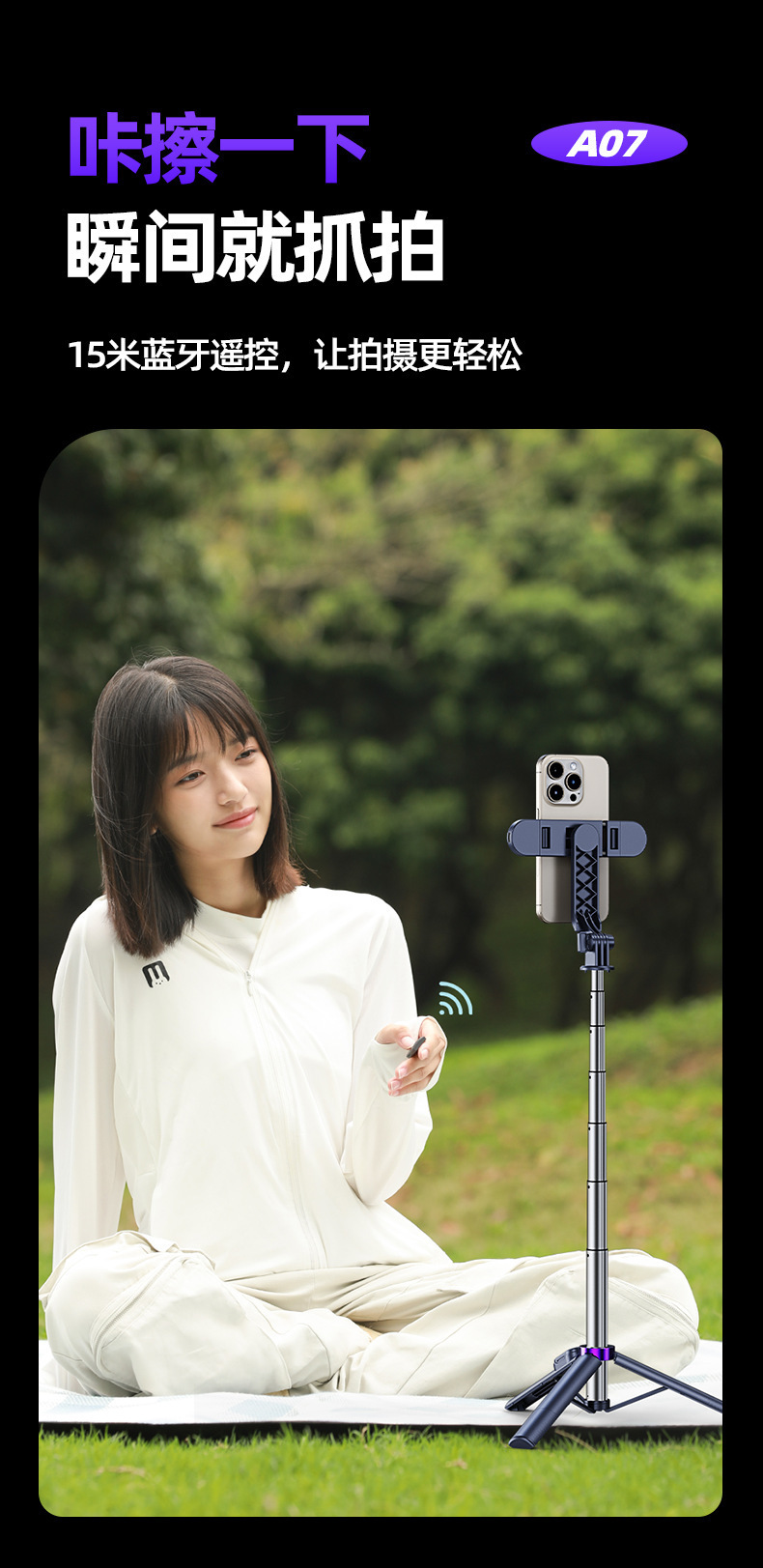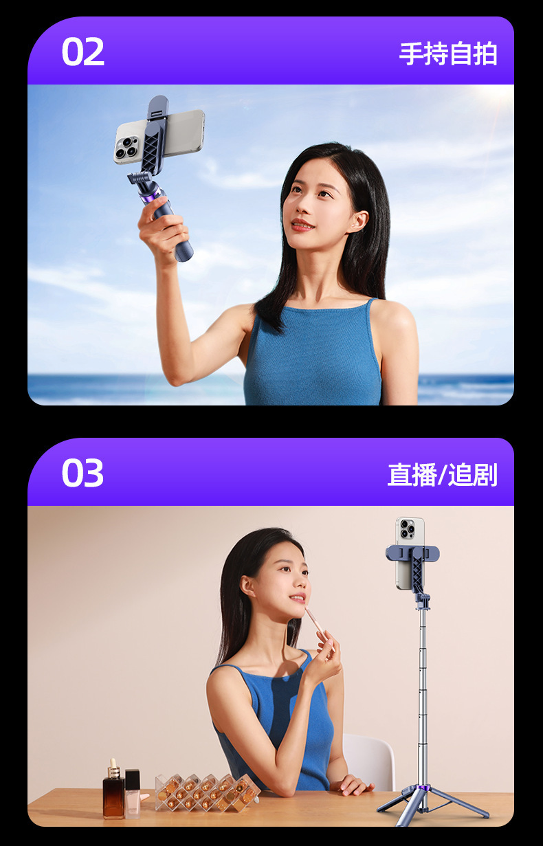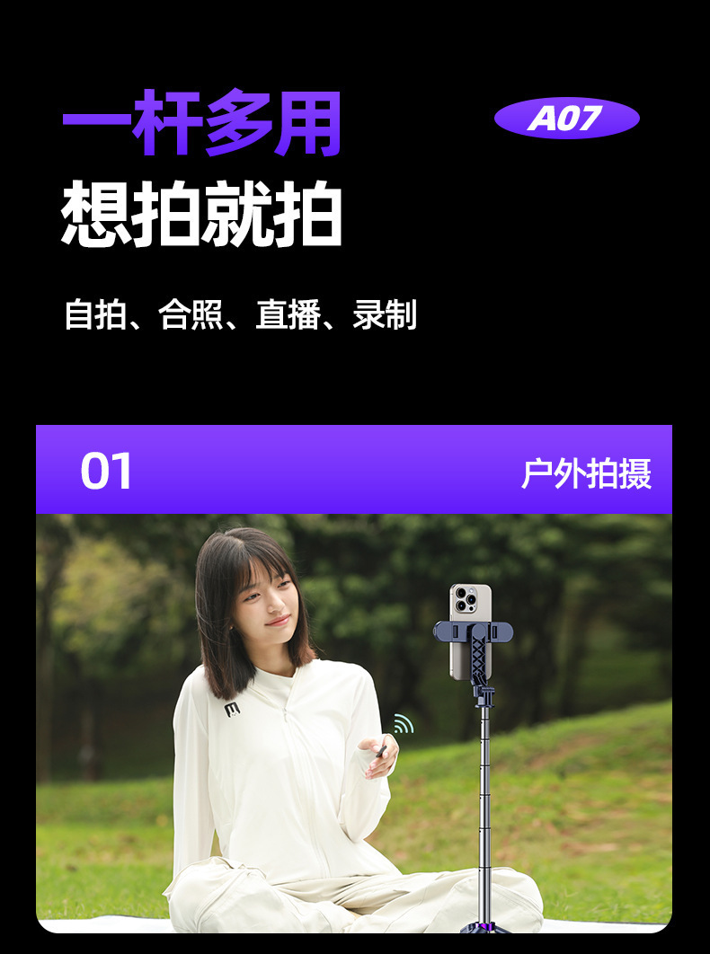 a07 aluminum alloy tripod selfie stick-black-70cm-double light