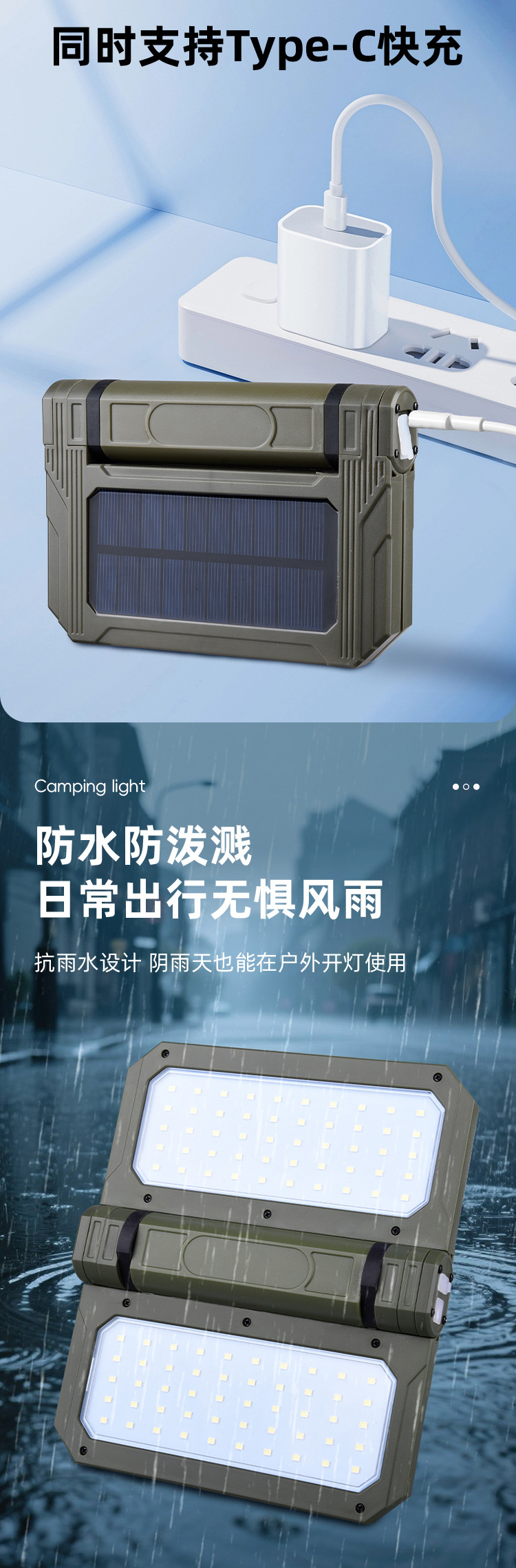 2. Solar charging indicator light is on red, and the data line charging indicator light is on red. When fully charged, the green indicator light is on.