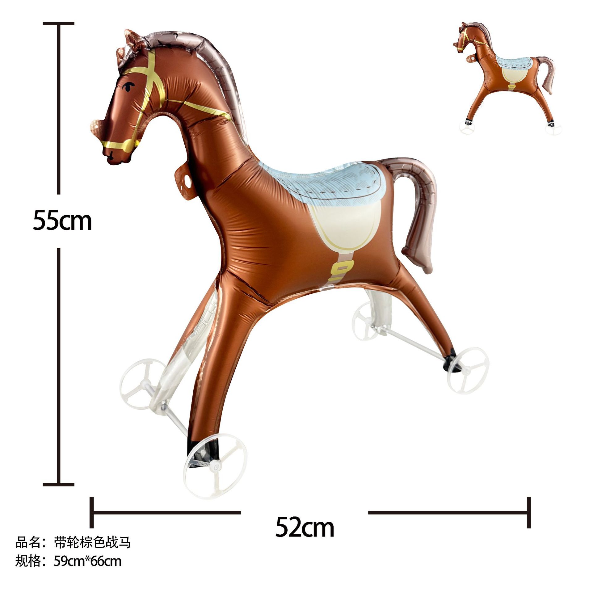 brown horse with wheels