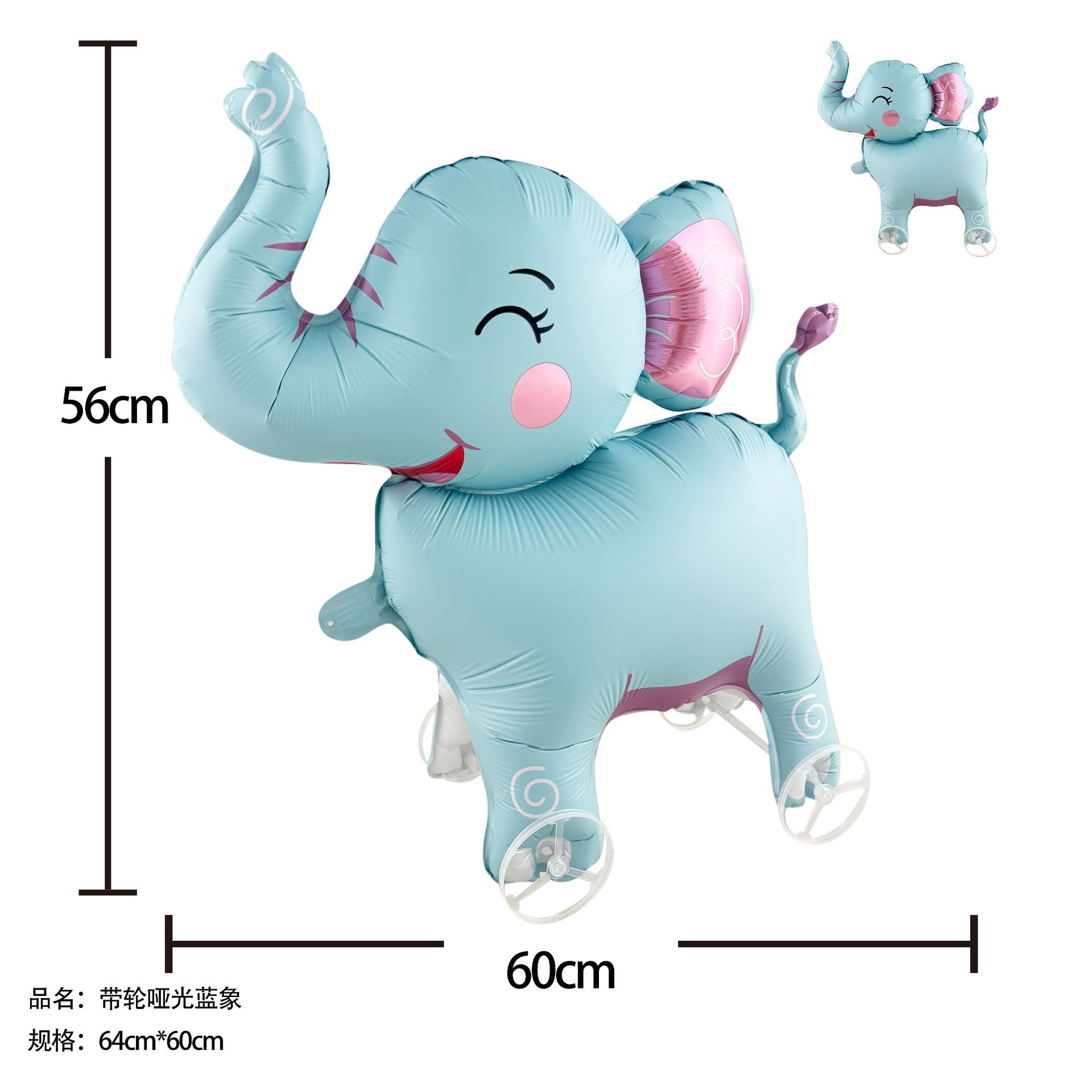 matte blue elephant with wheels