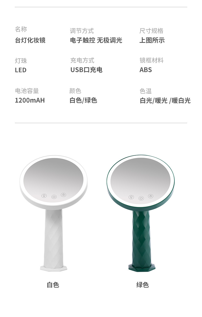 usb rechargeable led table lamp makeup mirror green