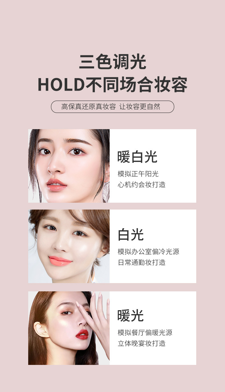 usb three sides folding makeup mirror pink