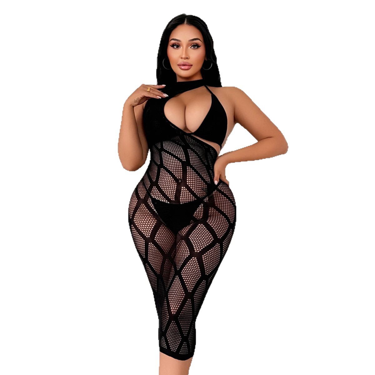 sexy lingerie fishnet stockings stockings women jk black silk arbitrary cut sexy european and american mesh dress one-piece backless