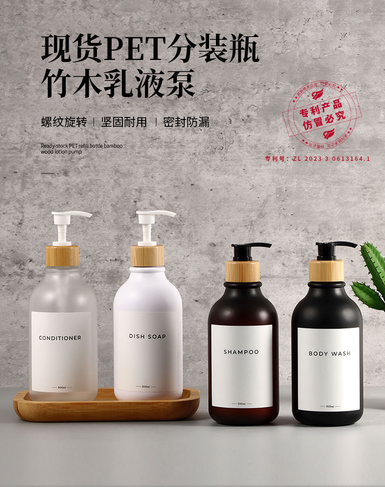 500ml; matte transparent bottle + white bamboo pump; pet