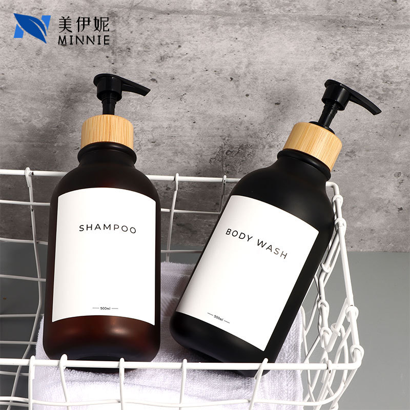 500ml; matte transparent bottle + black bamboo pump; pet