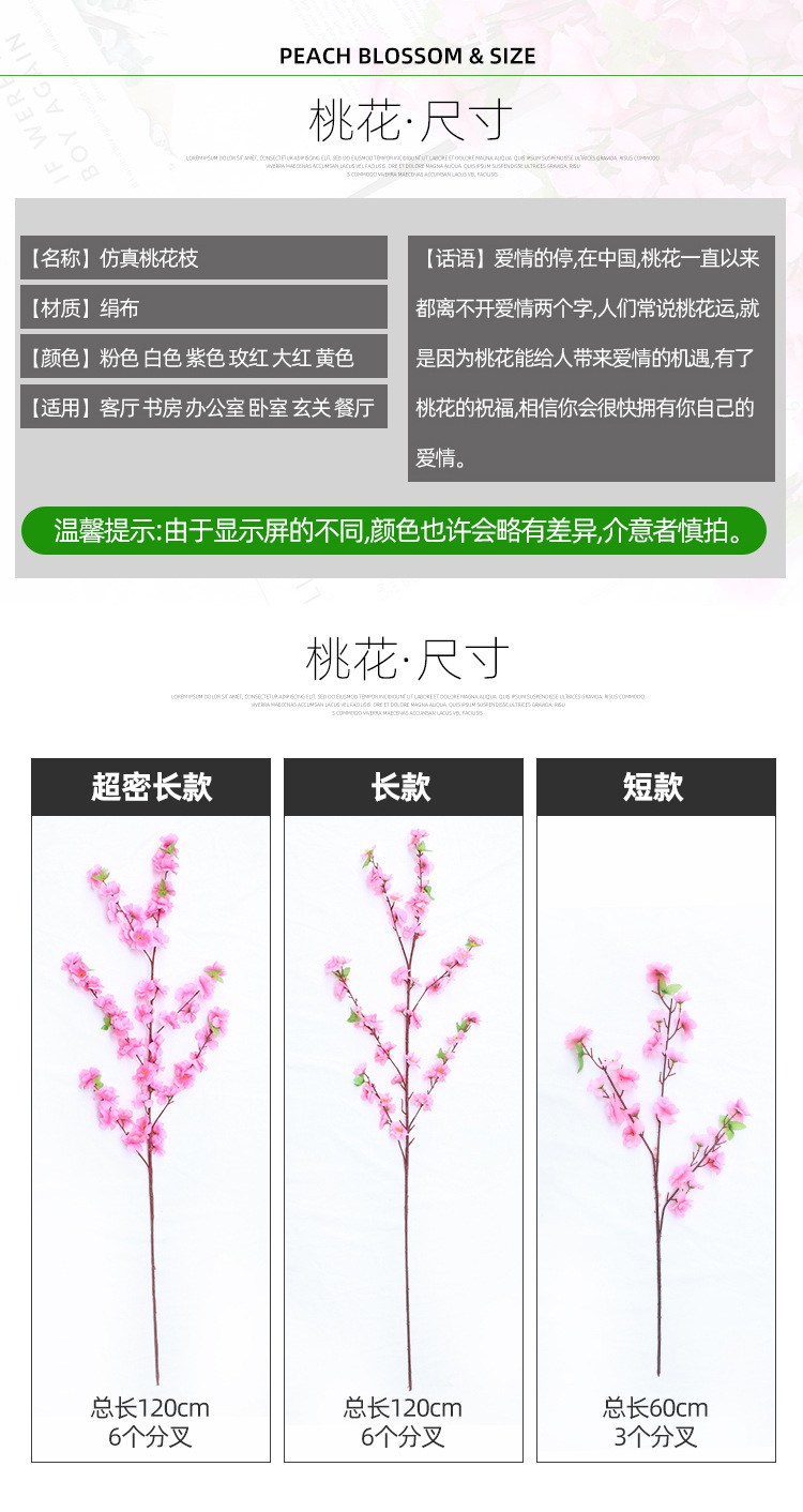 7 branches peach blossom rose red 1 branch