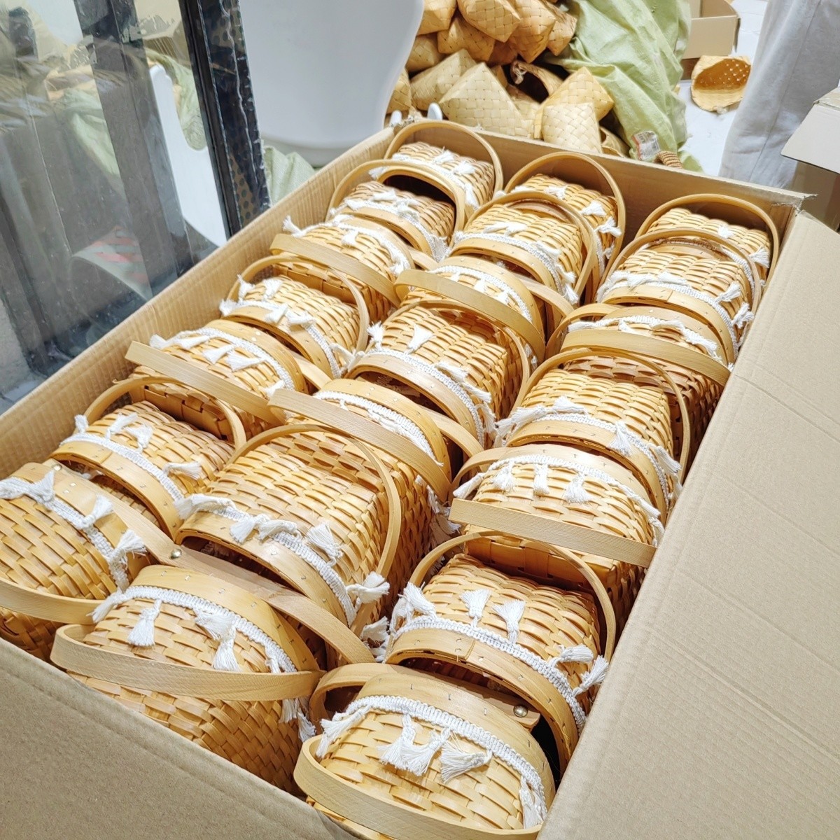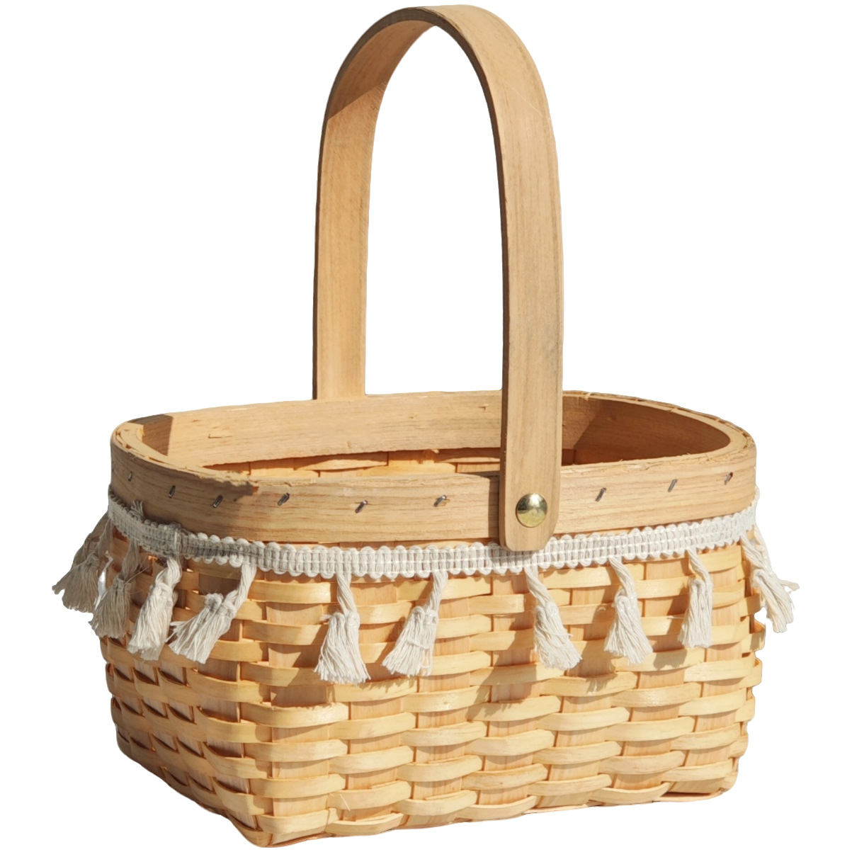 manual horizontal woven flower basket [white tassel edge + waterproof layer]]