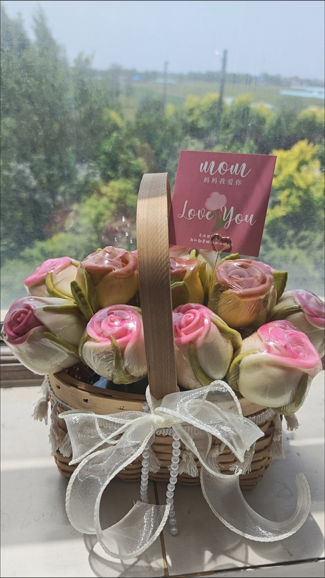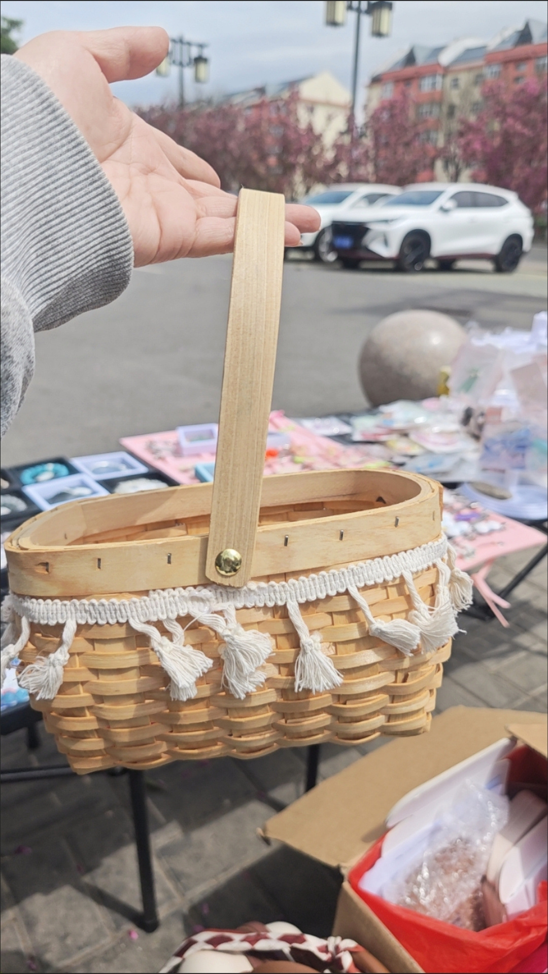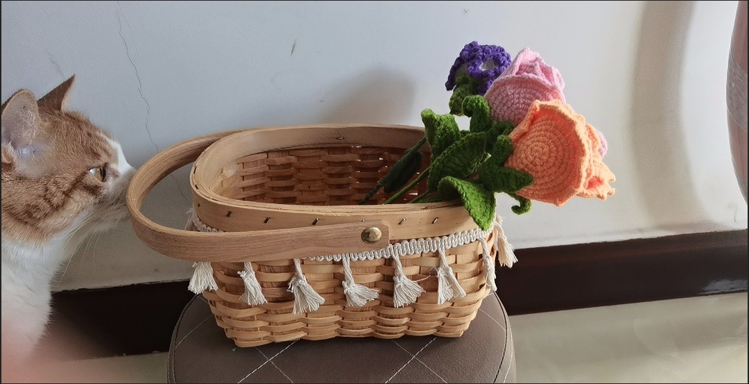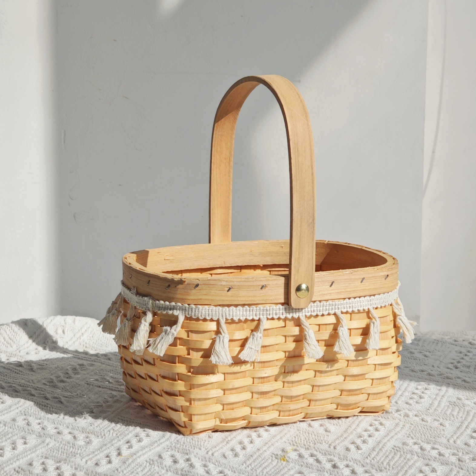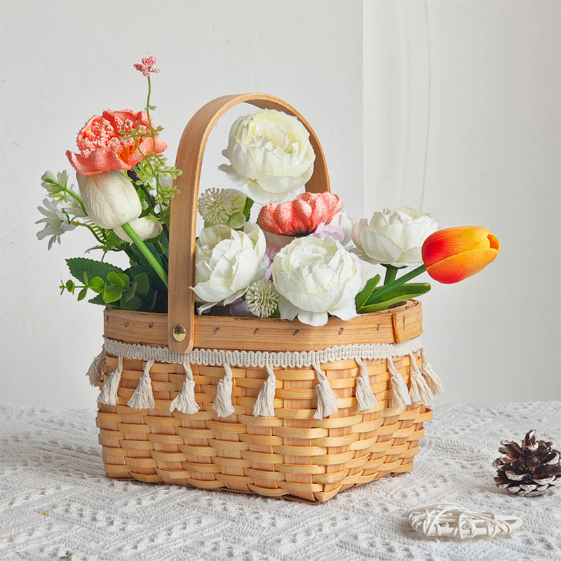 handmade horizontal woven flower basket [lace bell + waterproof layer]]