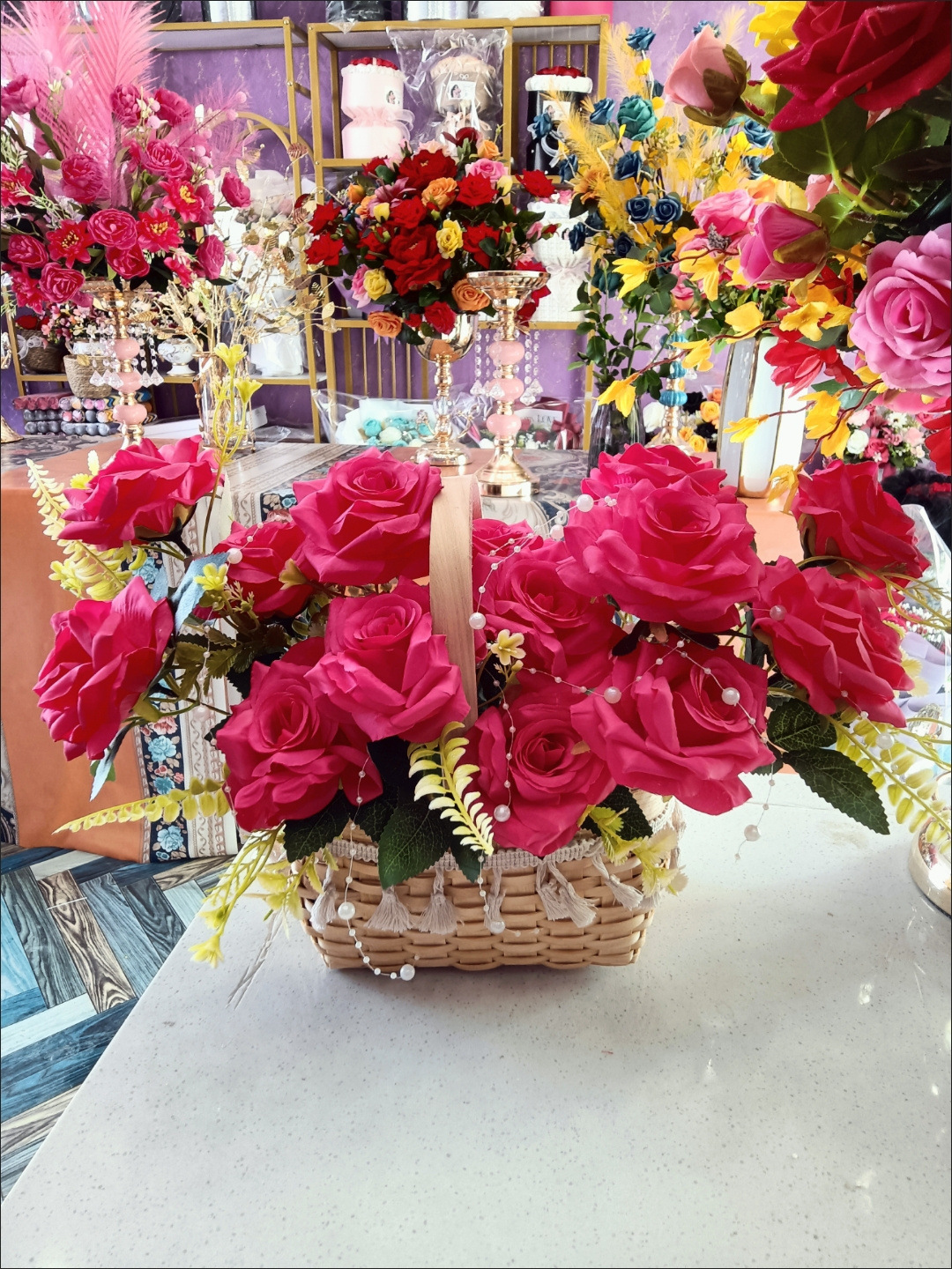 manual horizontal woven flower basket [classic style pearl edge + waterproof layer]]
