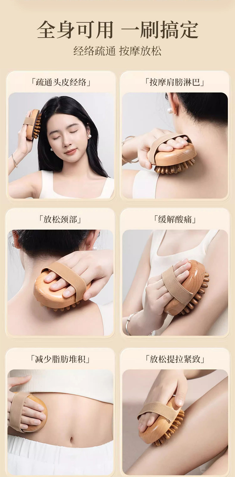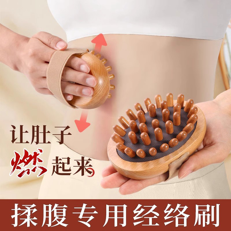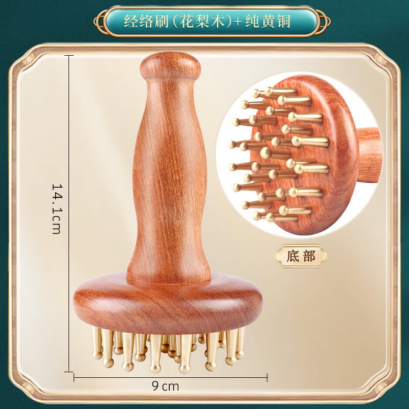 29 teeth brass meridian brush [rosewood/cylinder] + essential oil + acupoint map