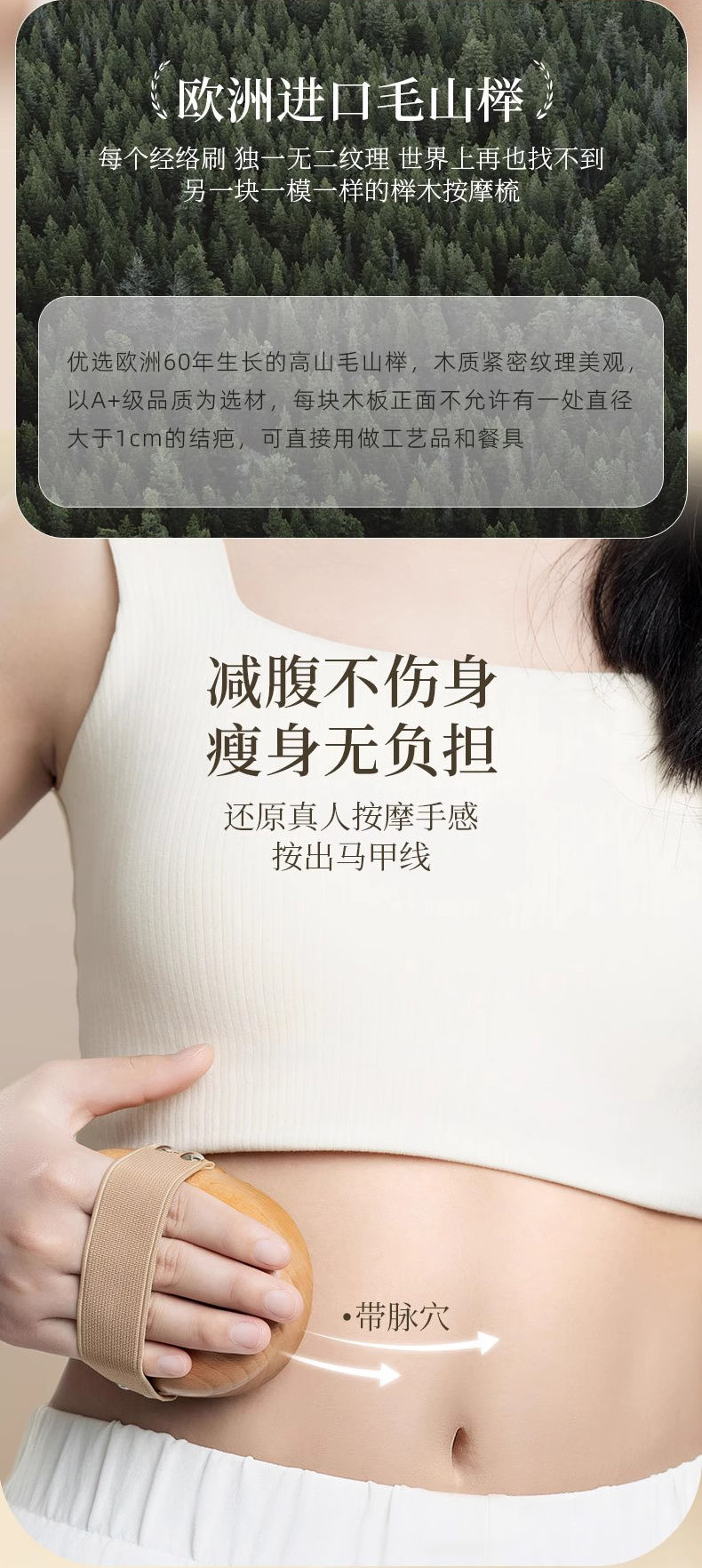 meridian comb (natural beech) + essential oil + human body figure