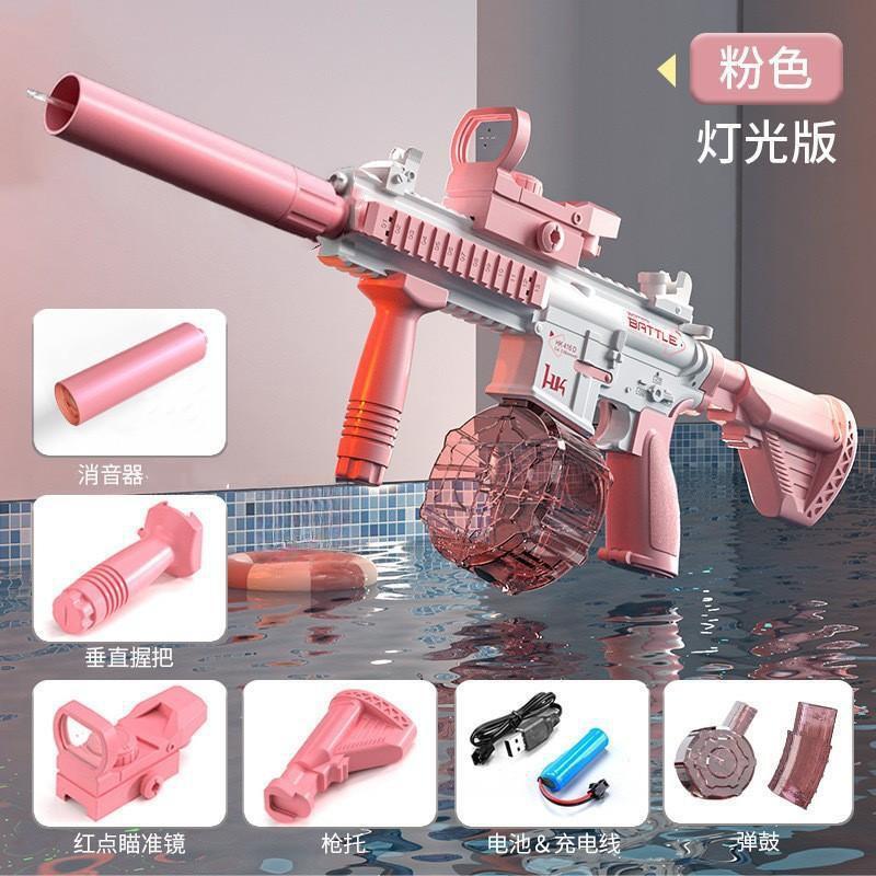 new automatic m416 water gun [pink] english color box (ammunition drum model version)
