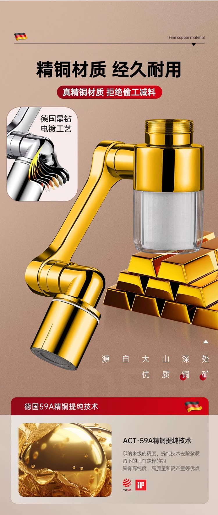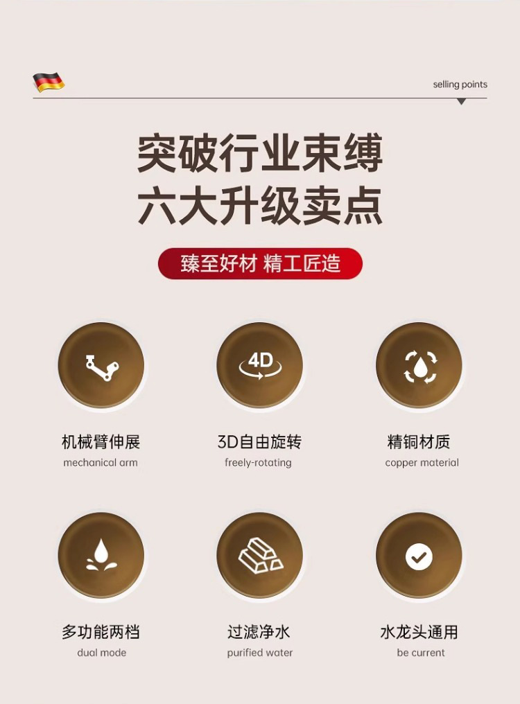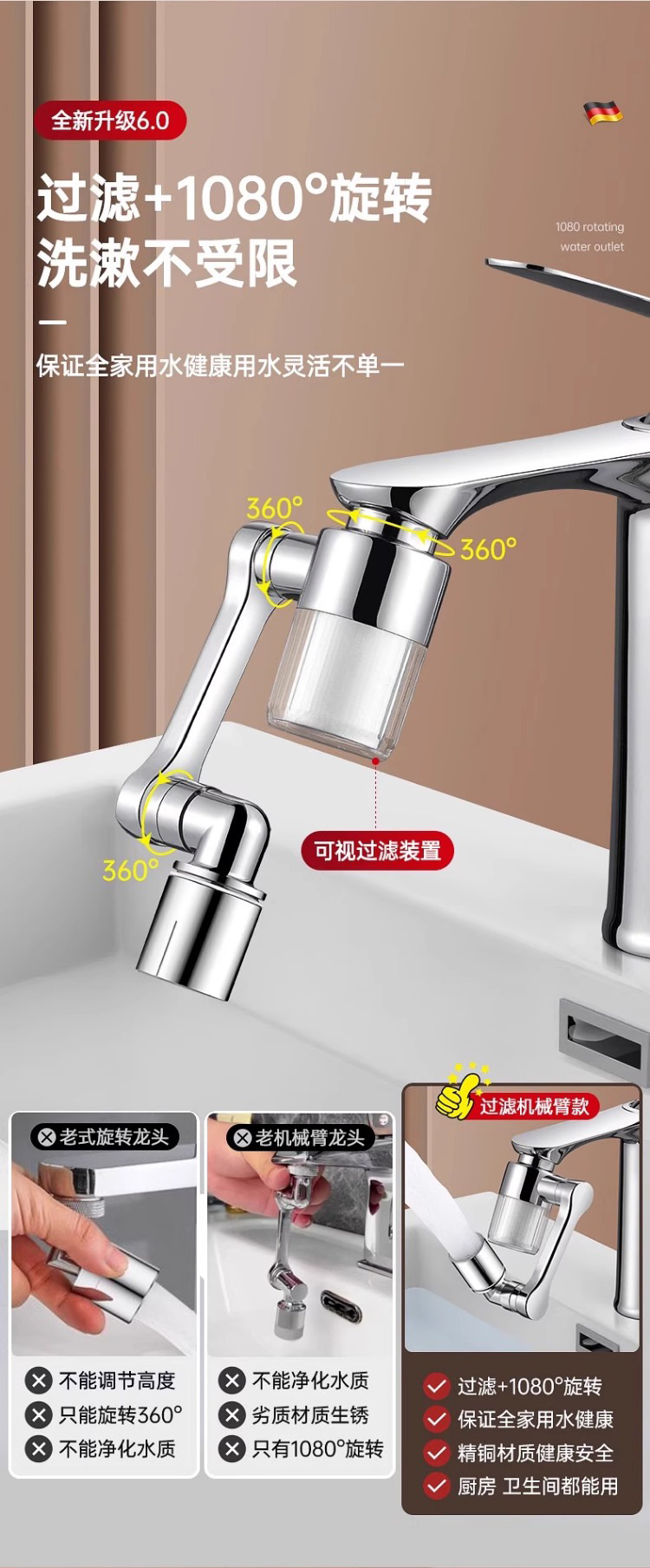 [upgraded model-filter water purification] 1440 ° universal | 2-gear double water outlet +6 original filter elements for free