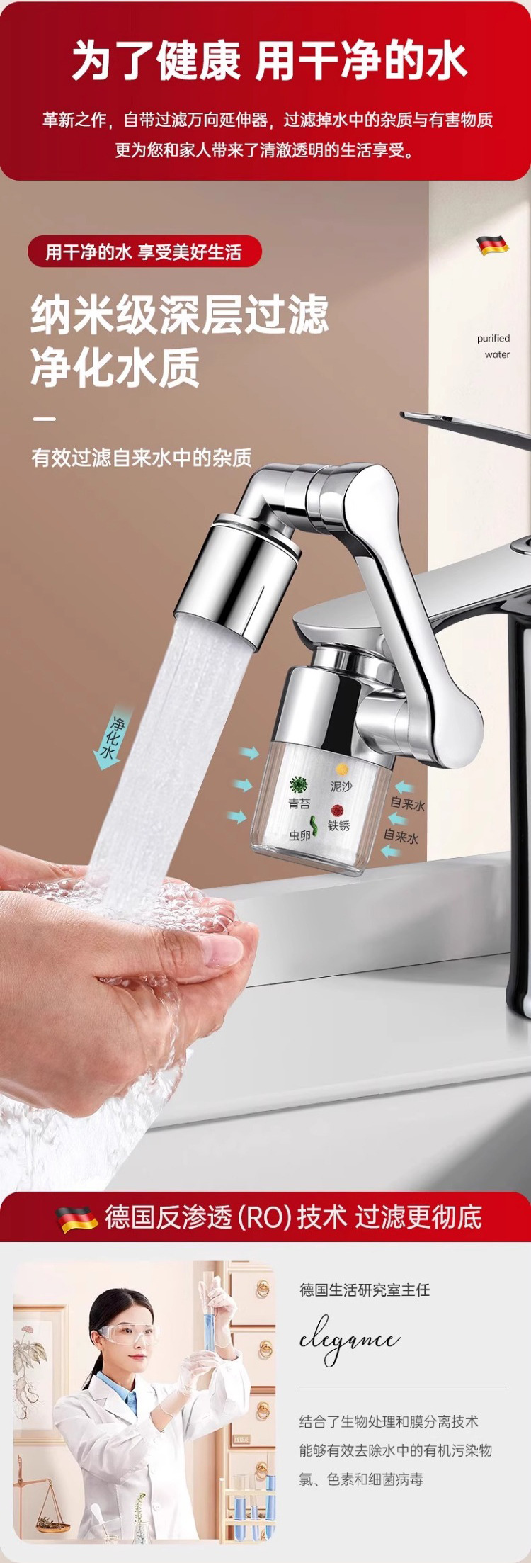 [exclusive-filter water purification] 1440 ° universal | 2-level double water outlet +11 original filter elements for free