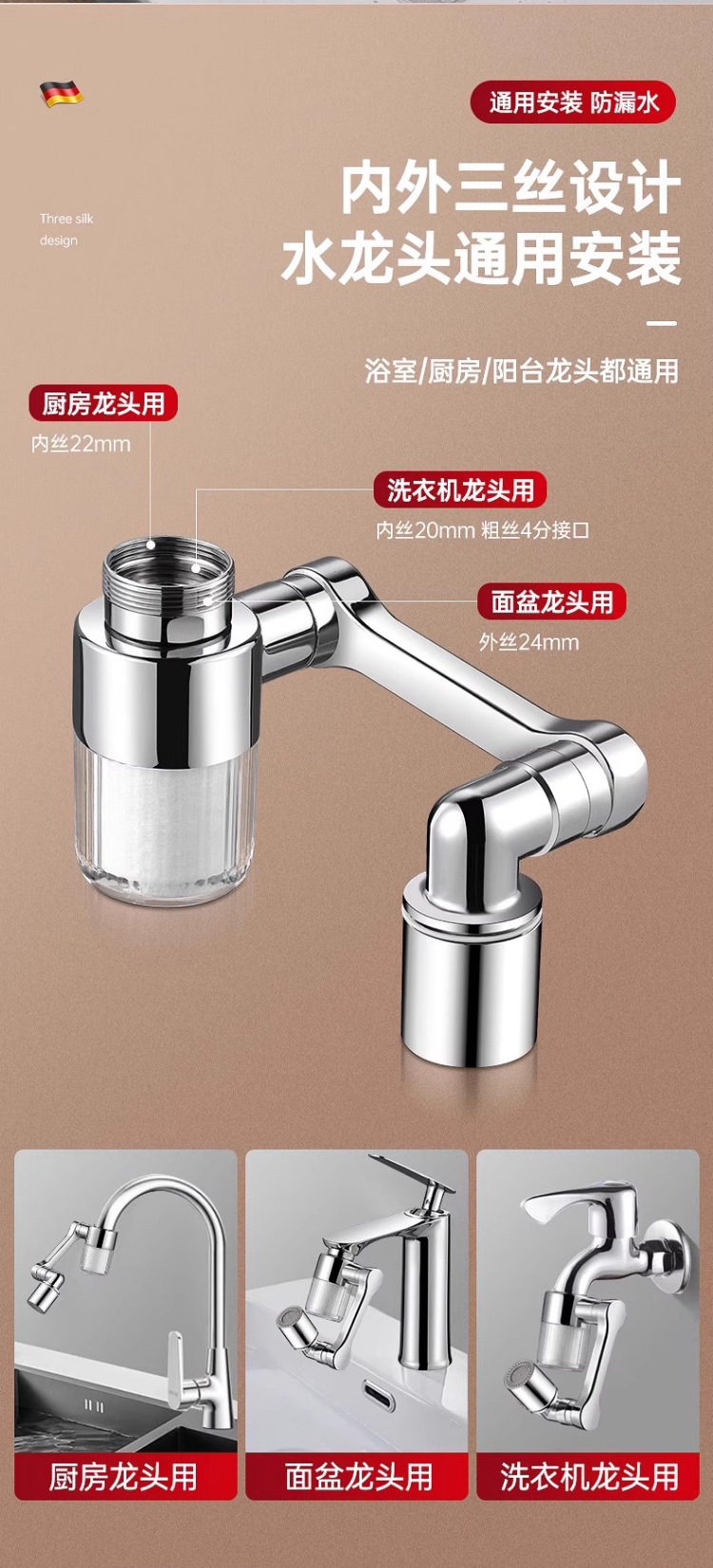 [basic style-filter water purification] 1440 ° universal | 2-gear double water outlet + original filter element