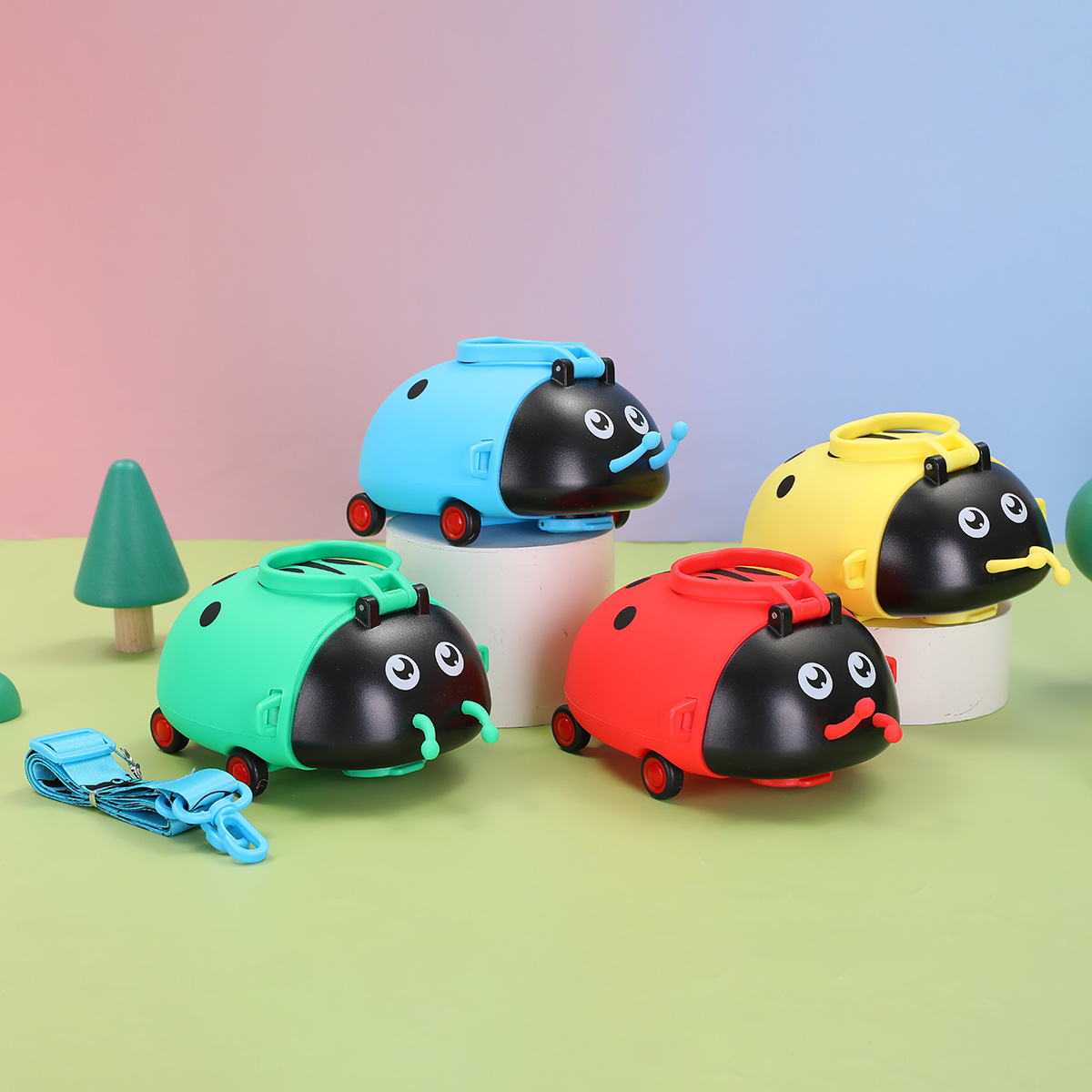 creative children's cartoon ladybug plastic water cup outdoor portable strap sports water cup high temperature resistant bullet cup